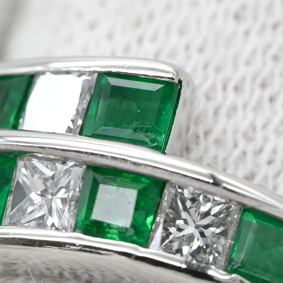 リング 指輪 エメラルド ダイヤモンド リング Pt900 シルバー グリーン 緑 プリンセスカット 中古