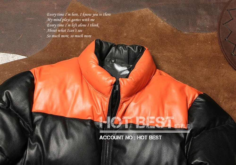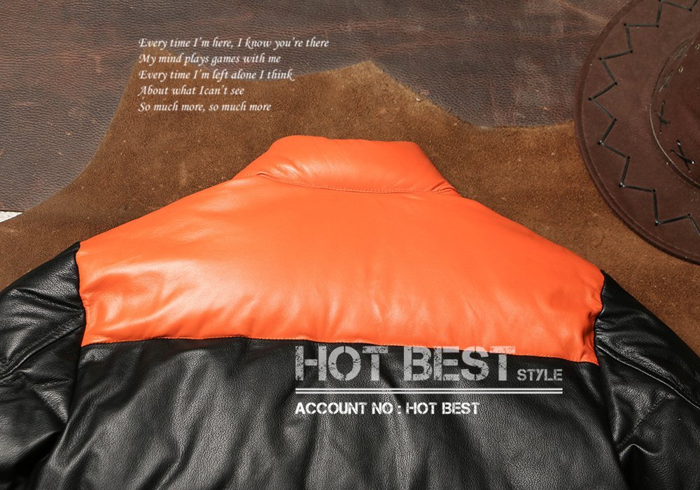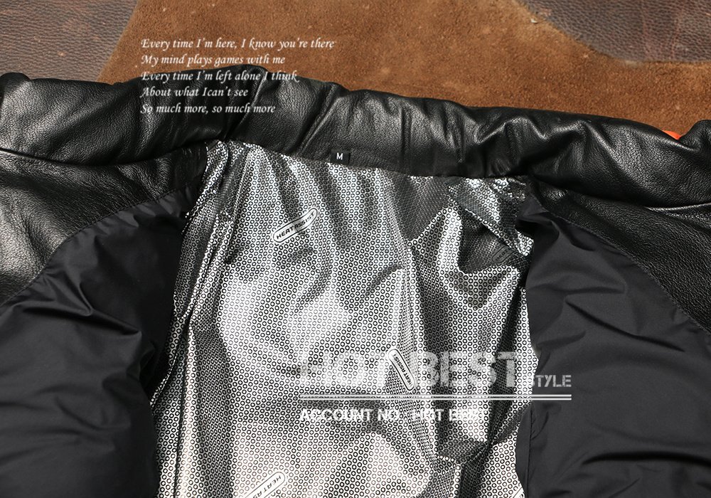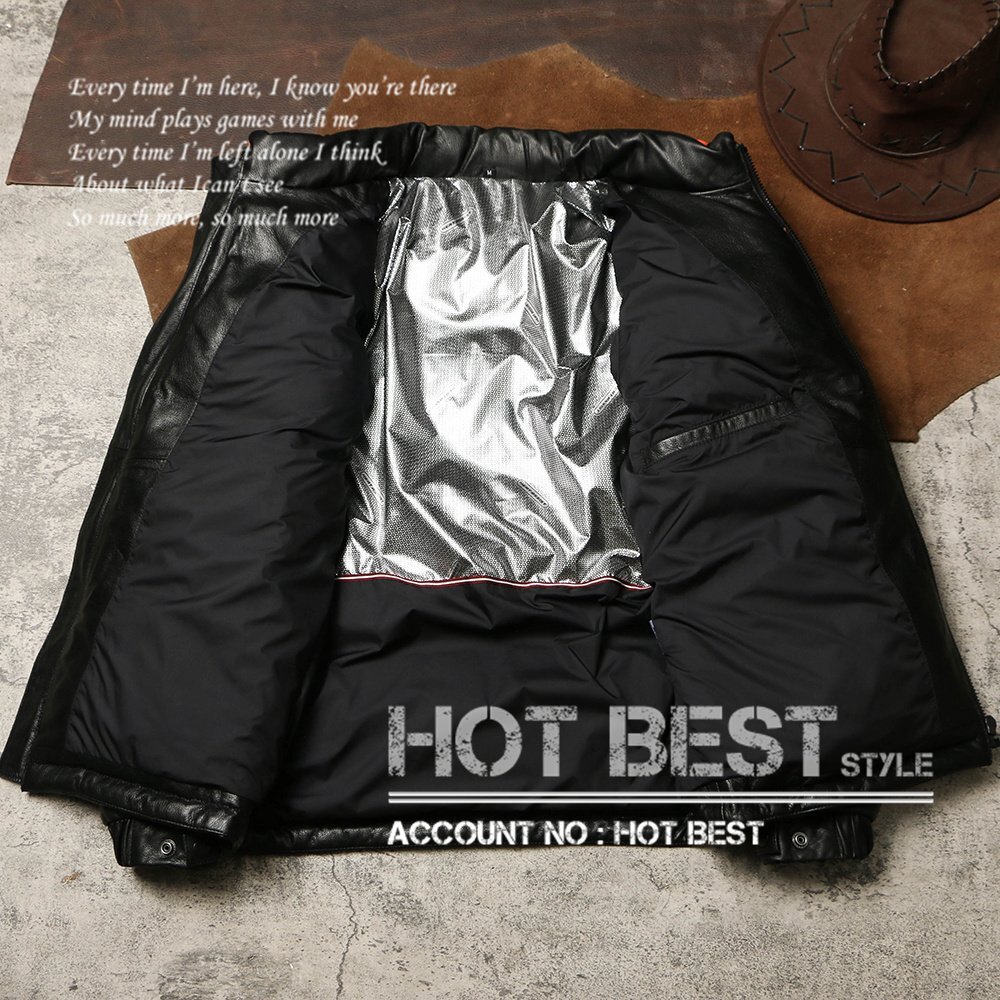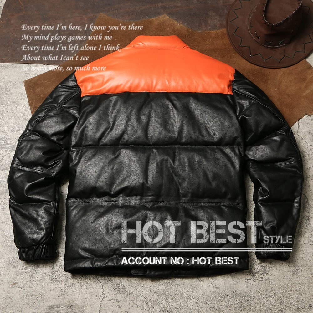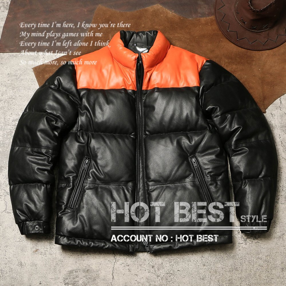 カウハイド MA-1タイプ レザーダウンジャケット ギフト メンズ 革ジャン おしゃれ 配色 ボマーボンバー フライト イタリアンレザー 牛革 Y1810/Mご希望のサイズを取引ナビでお知らせください