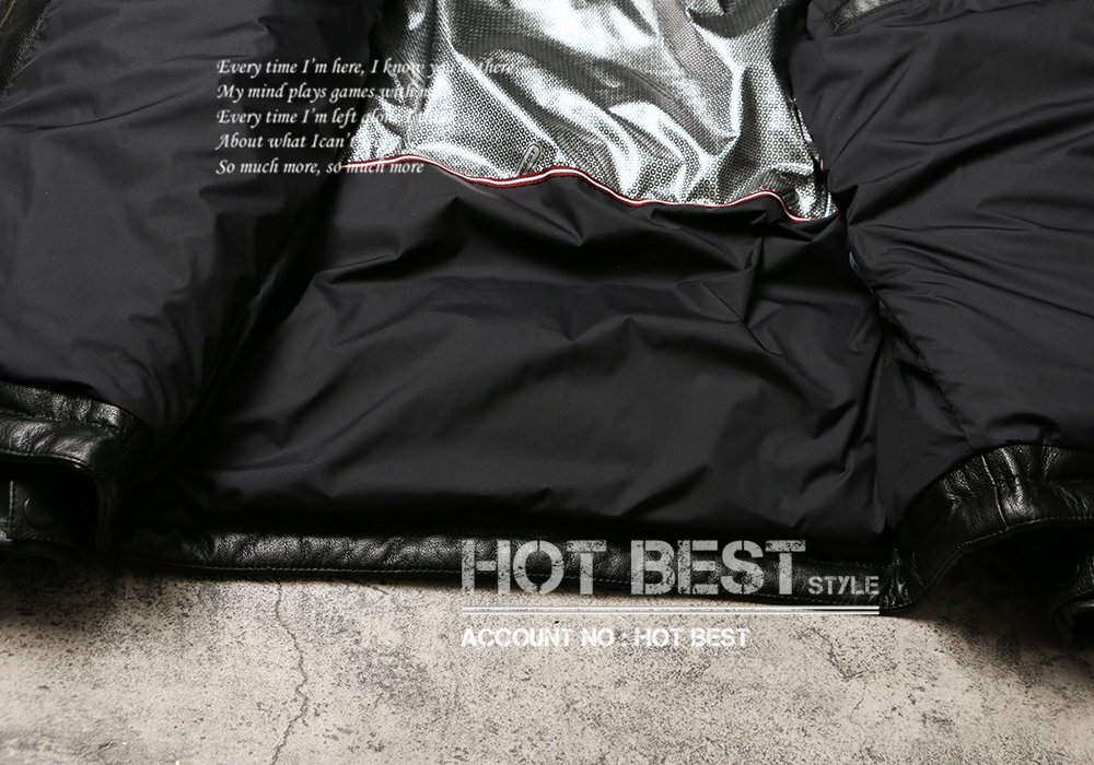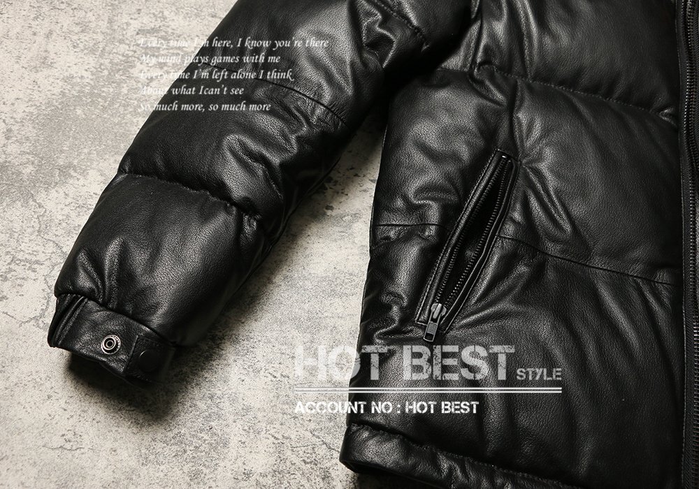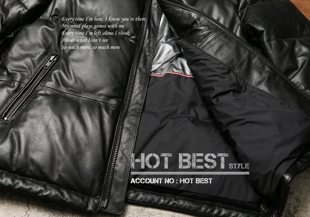 上質なカウハイド(牛革)を使用した、MA-1タイプのレザーダウンジャケットです。