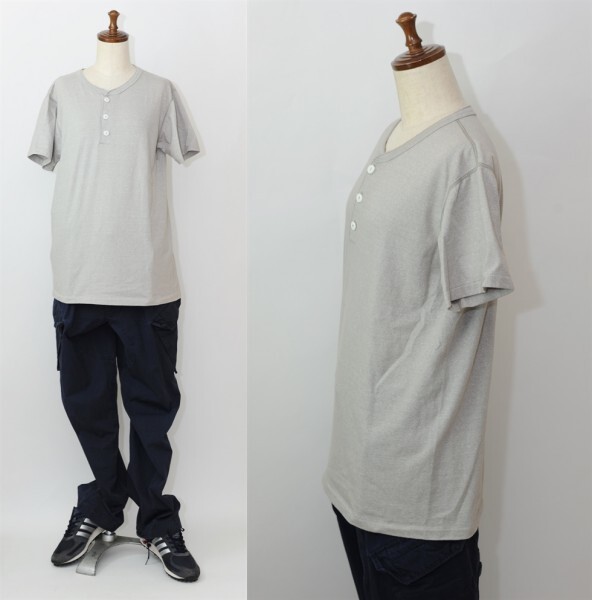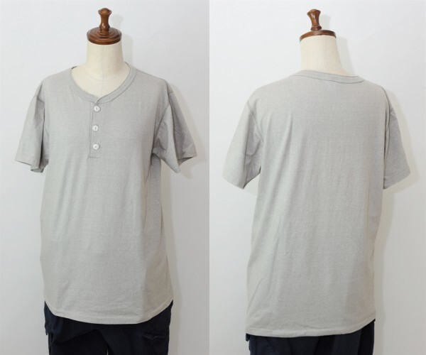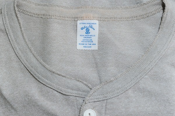 【希少アイテム 2000年代位 USA製 デザイン◎】レア ビンテージ VELVA SHEEN ベルバシーン コットン系 ヘンリーネック Tシャツ M グレー系 Made in USA