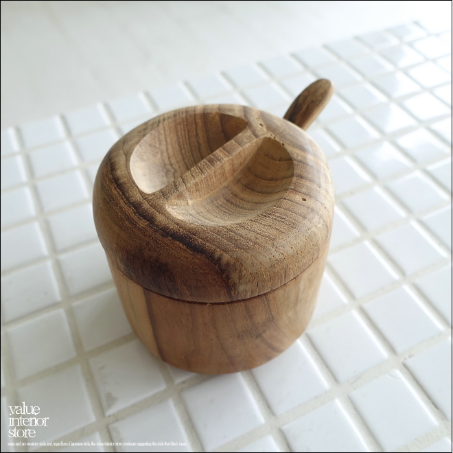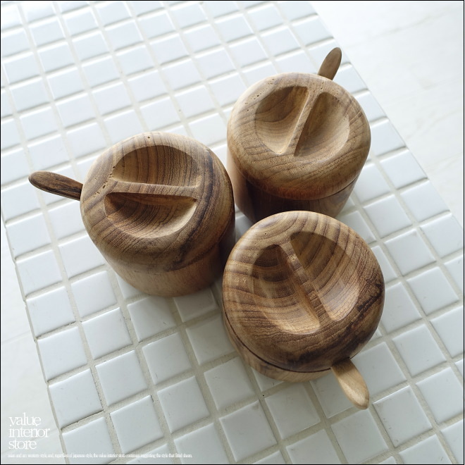 ■商品名 チーク調味料入れOV 『 表示価格は単価となります。セット販売ではありません。 』 *こちらの商品は他サイトでも同時に販売を行っております。ご注文が重なりました場合、販売をさせていただけないこともございますので、その際はご容赦いただきますよう何卒お願い申し上げます。 ■商品説明 素朴で暖かみが感じられるチーク無垢材の薬味入れ。チーク材の変化に富んだ個性的で美しい木目が一つ一つ楽しさを与えてくれます。 ポット内には収納可能な小さなスプーン(さじ)が付属します。調味料入れ以外にも小物入れなどとしてもお使いいただけます。 表面は食器にお使いいただけますミネラルオイル(ライム油・大豆油・チョウジ油・ナツメグ油)仕上げとなります。 ◇お手入れ方法 食器用洗剤で水洗いして頂いて大丈夫ですがなるべく早く水気を拭き乾燥させるとよいです。 食洗機・乾燥機はお使いいただけません。またお使いいただくうちに艶がなくなった場合にはオリーブオイルやえごまオイル(食用)を薄く塗り乾燥させるとよいです。 ◇チーク材は世界三大銘木の一つとして知られ、硬さと張りがあり良質の天然油分を含むことから耐久性に優れています。特に細かな美しい木目が特徴で家具や建材など世界中で人気の高い木材です。 ◇日本製のような正確さは無いかもしれませんが、1点1点出来上がるまでの殆どの製作工程を手作業で行う、インドネシア家具職人たちの手づくり製法はとても暖か味が感じられます。細かな傷、フシ、色の濃淡、また反りなどの無垢材特有の”暴れ”が見受けられる場合がございますが、無垢材の素材や特徴、また手づくりのテイストとして工業品にはない自然の質感をお楽しみ下さい。 ◇画像はサンプル画像となります。天然木や手作業での表面仕上げのため、木目、色合い、大きさはそれぞれ個体差がございますので、予めご了承ください。 ◇チーク無垢材は人間のお肌同様に、長時間、直射日光や冷暖房の風のあたる場所や湿気、乾燥が著しい場所を嫌います。反りや割れ、退色の原因になりますのでお避けください。 ■仕様 ・サイズ : (約)直径8cm×高さ7.5cm スプーンのサイズ(約)長さ11.5cm×幅2.7cm ( ※サイズは商品により±1cm程度の違いがございます。予めご了承ください。) ・素材 : チーク材(総無垢) ・生産国 : インドネシア ■備考 ◇掲載画像は十分配慮しておりますが、撮影時の光の反射や光量により明るさや色彩に違いがでますことや、素材の性質上、仕入れ時の材料によっても色味に多少濃淡がございます。また、ブラウザ上ではお色を正確に再現ができませんことを予めご了承下さい。 ◇商品は調味料入れ×1(販売価格は単価)です。その他はイメージです。 ◇こちらはギフト包装をお受けできません。 |