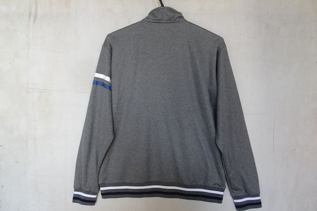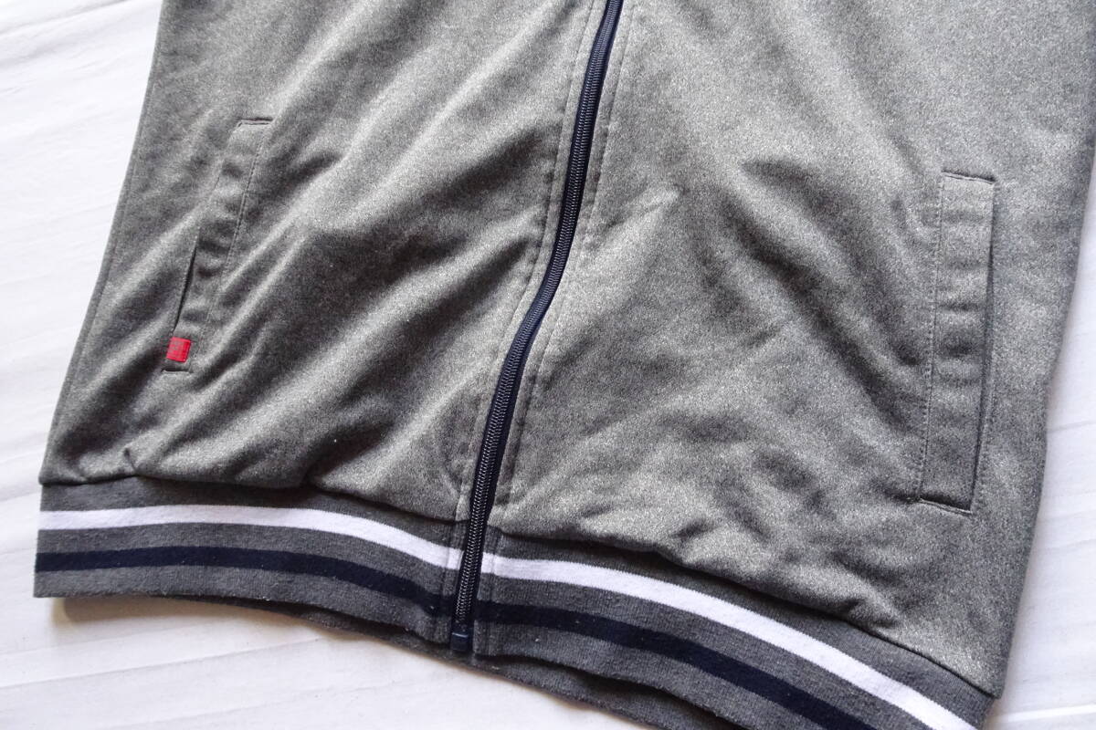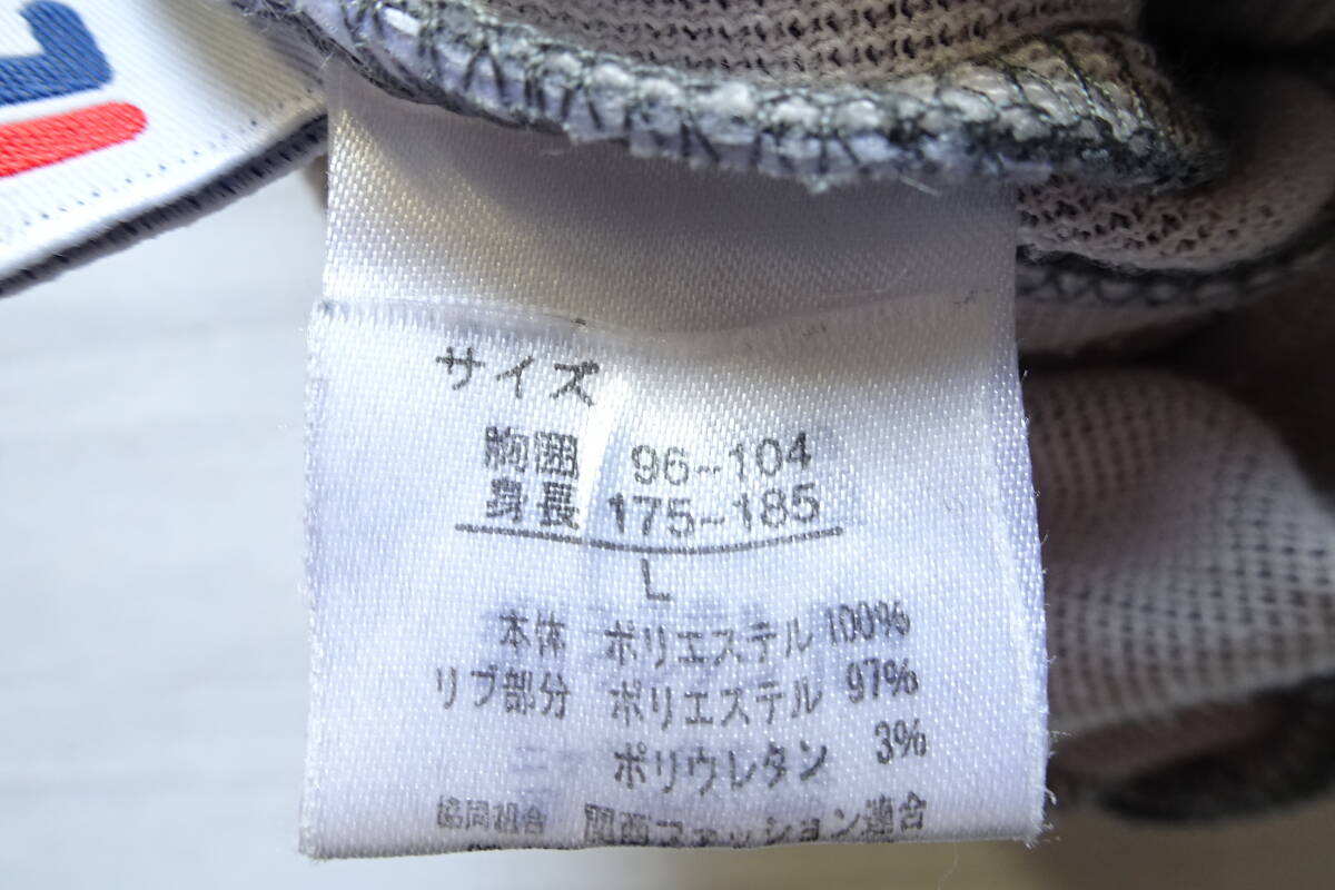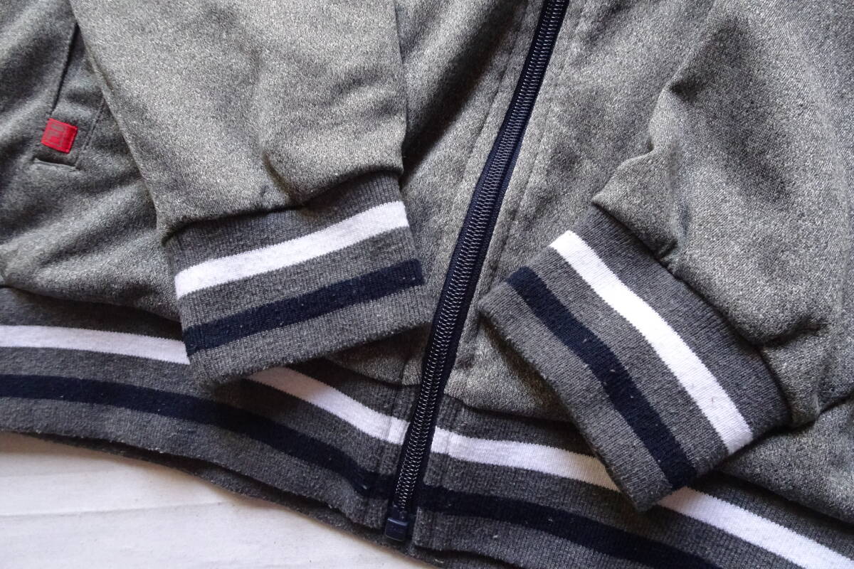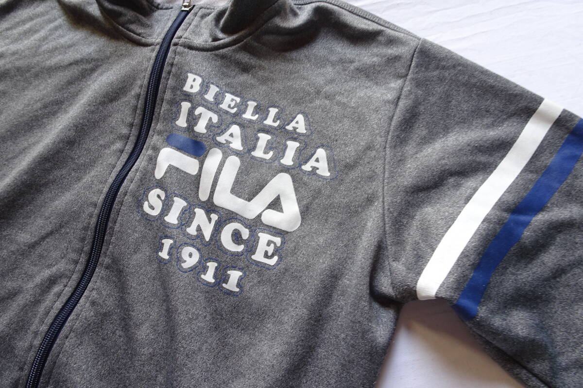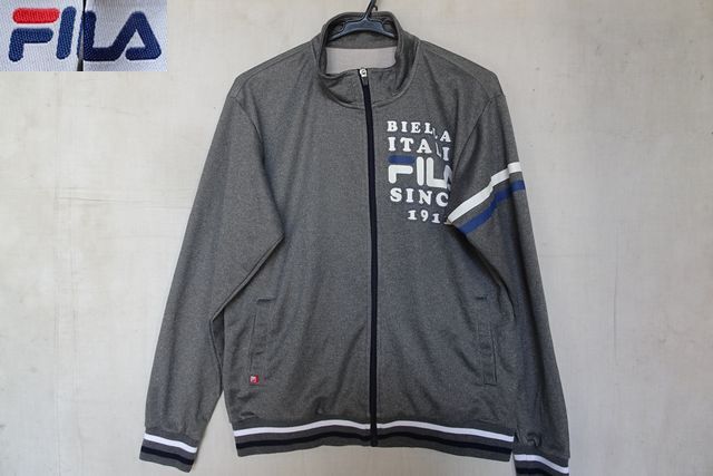 FILA/フィラ/長袖トラックジャケット/ジャージ素材/前ジップアップ/白・紺ラインプリント/スポーツ/ストーングレー/Lサイズ(9/16R7)
