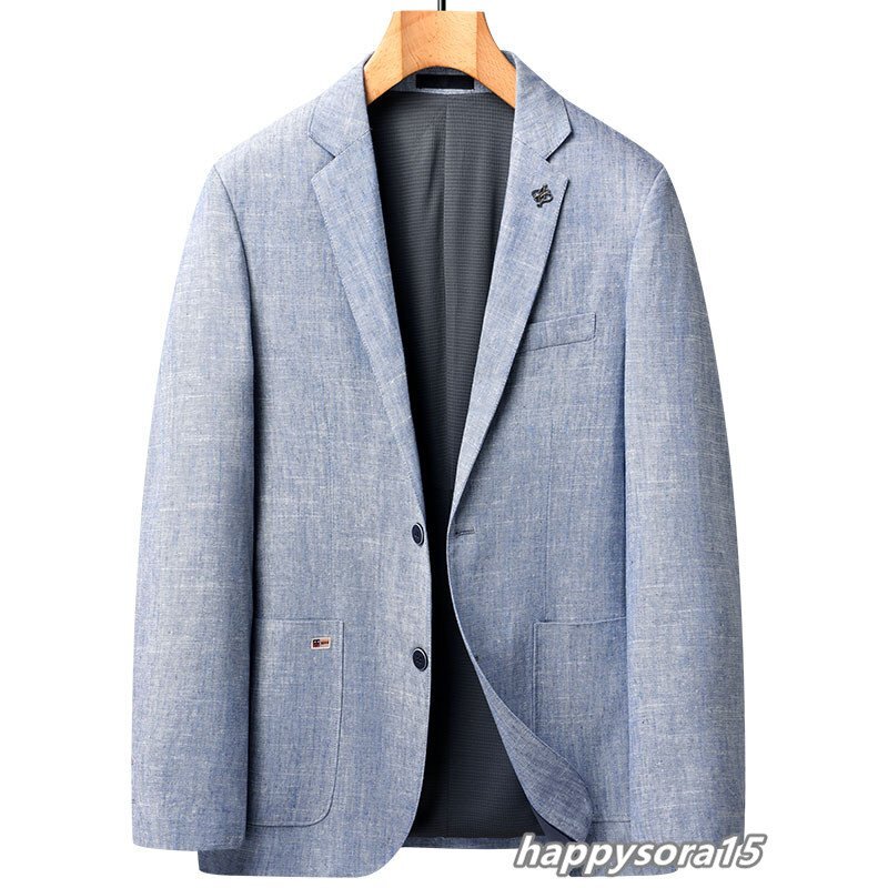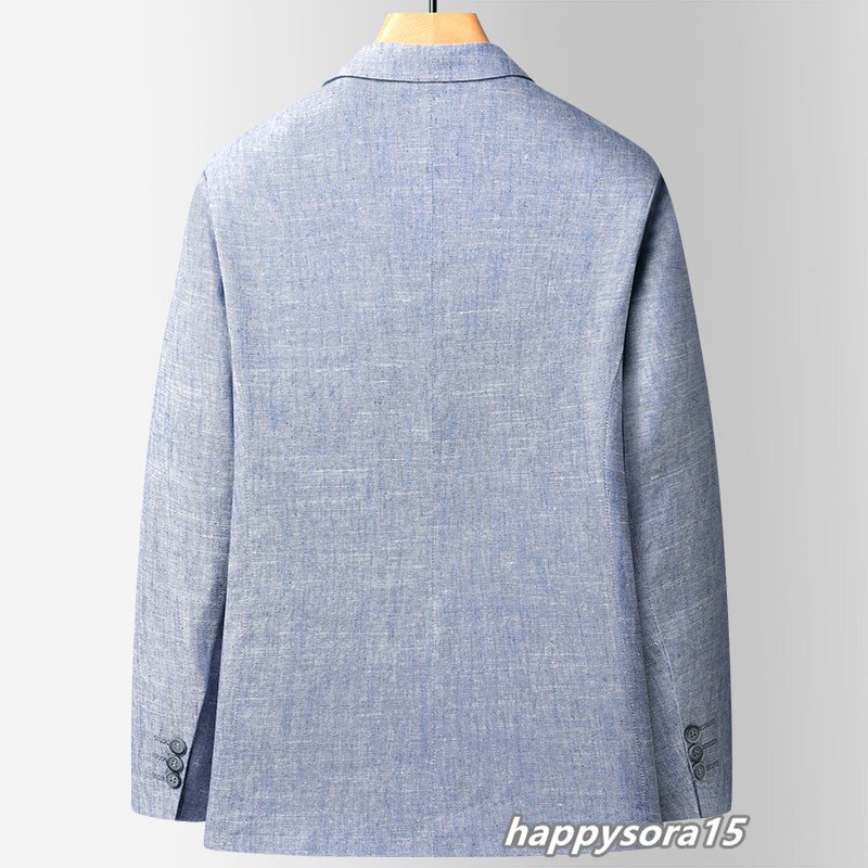 テーラードジャケット メンズ ビジネスジャケット ブレザー 紳士服 綿麻 春服 夏服 カジュアル ブルー XL