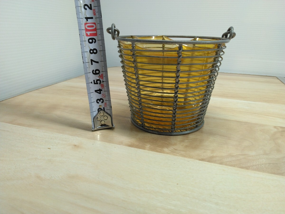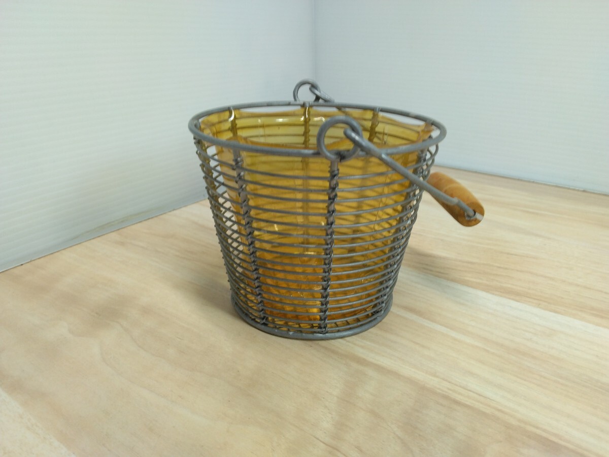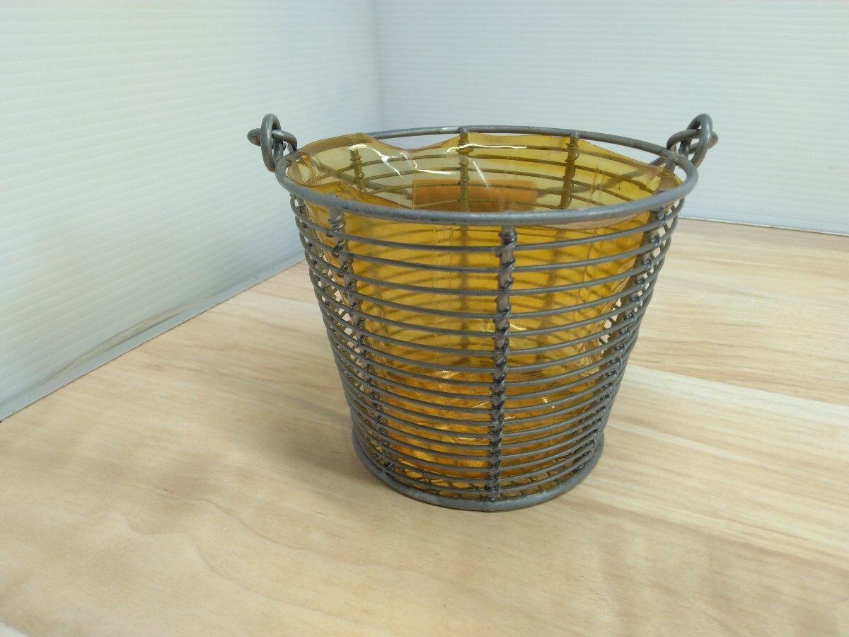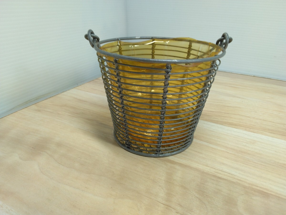 未使用品 汚れ有り ワイヤーバスケット ポット 花かご 小物入れ インテリア ガーデニング 花入れ 飾り物 置物 オブジェ 持ち手付