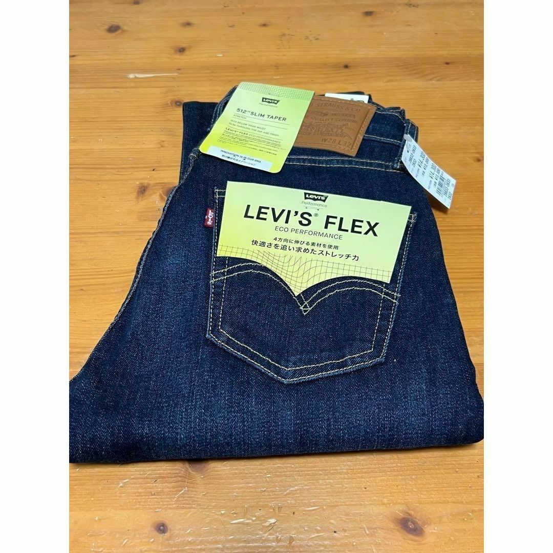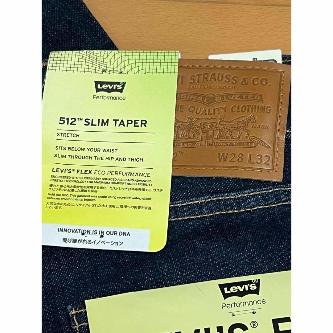 Levi's 512Mテーパードジーンズ。太ももから裾に向かって角度のある絞りの効いたテーパードシルエットです。
