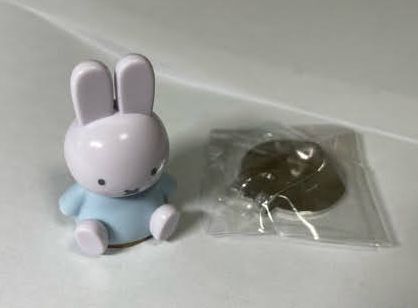 プラスチックのマスコットに磁石に反応するようワッシャーを貼り付けた手作りマーカーです。