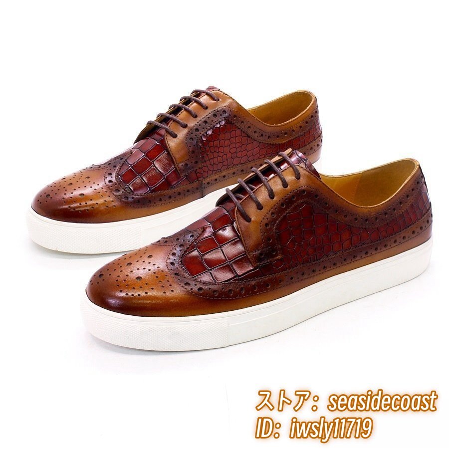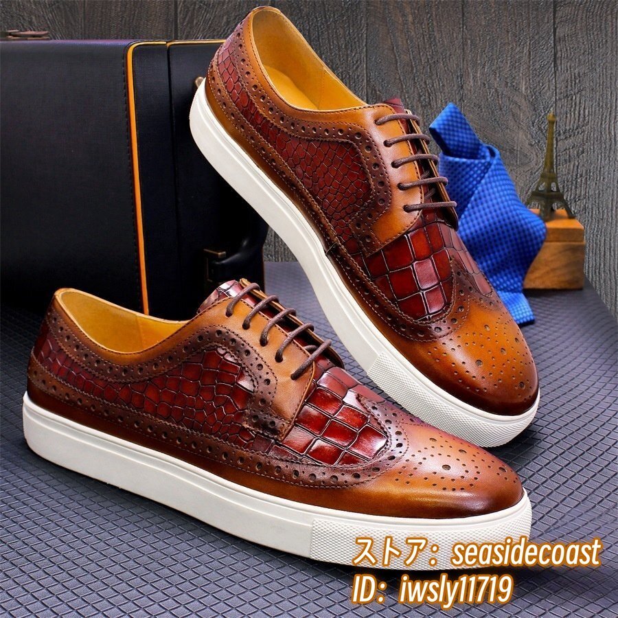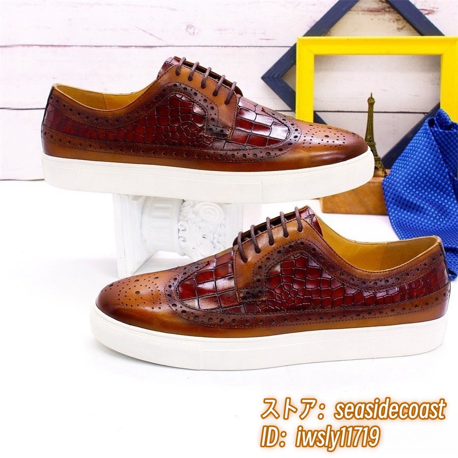 定価8万◆超希少 メンズ ローファー 本革 ビジネスシューズ スリッポン 職人手作り 牛革レザーシューズ 鰐柄 ドライビングシューズ 26.5cm
