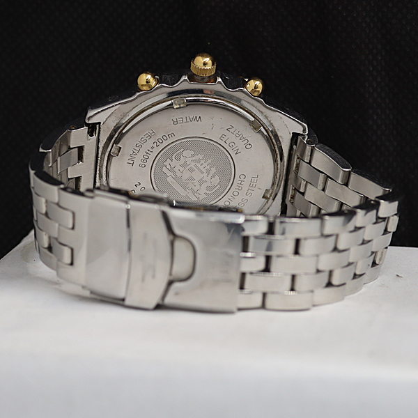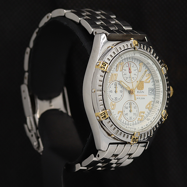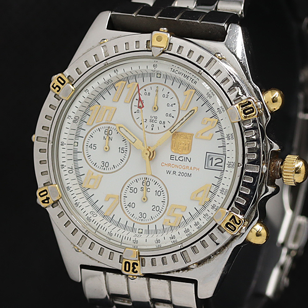 稼働 良品 エルジン FK-1094-E QZ クロノグラフ 回転ベゼル 白文字盤 レディース腕時計 AOY 2000000 NSK