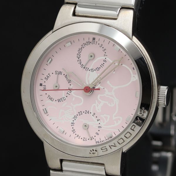 保/箱付 スヌーピー 115 ラウンド クロノグラフ QZ ピンク文字盤 レディース腕時計 TKD 2000000 NSK