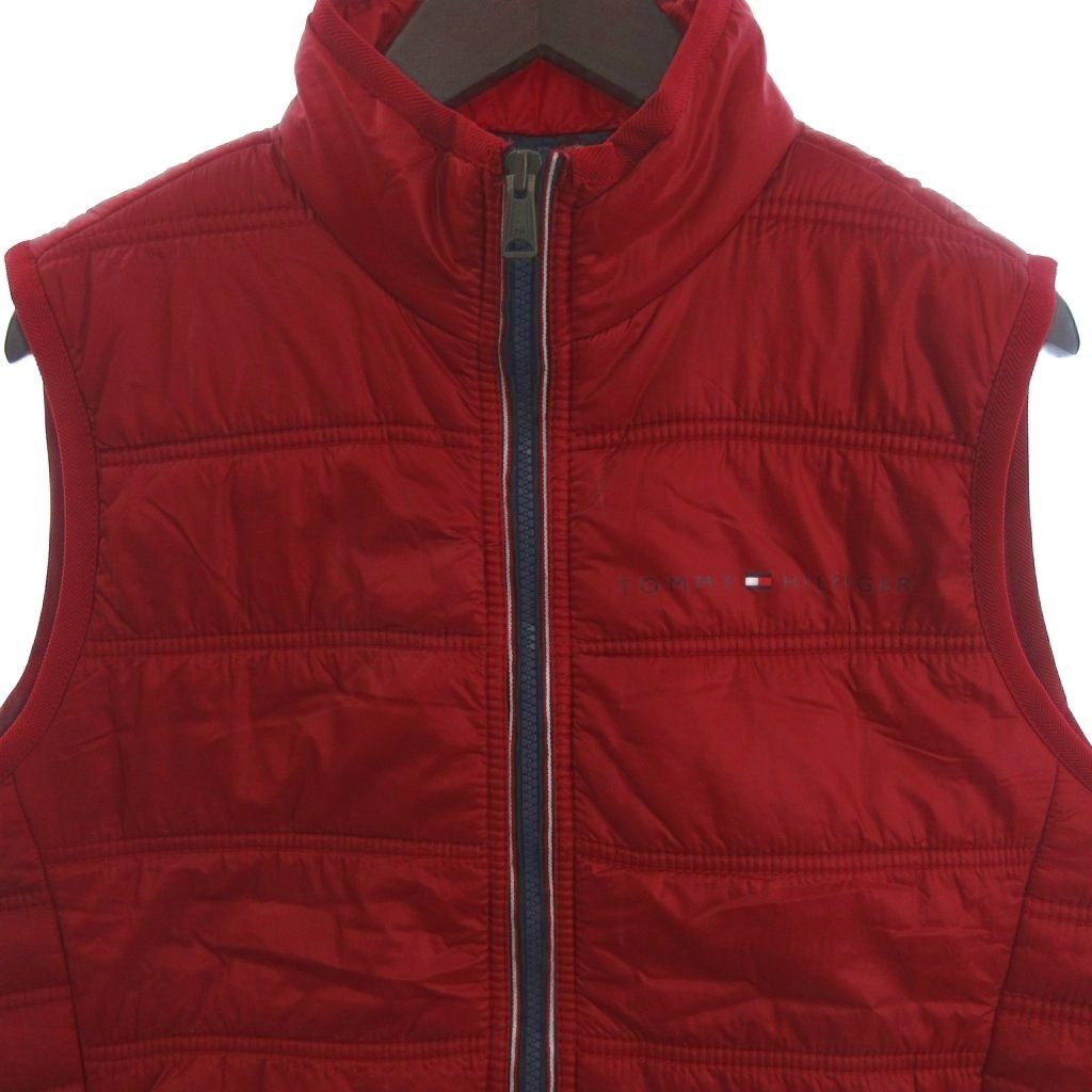 トミーヒルフィガー TOMMY HILFIGER ジップアップ 中綿 ベスト ロゴ ナイロン スタンドカラー 赤 レッド XS ★AA☆ ■GY99 メンズ