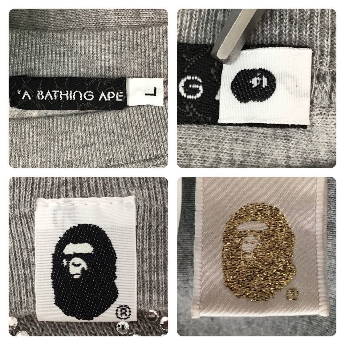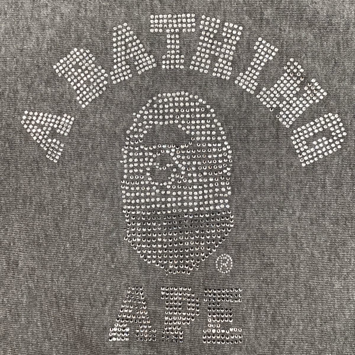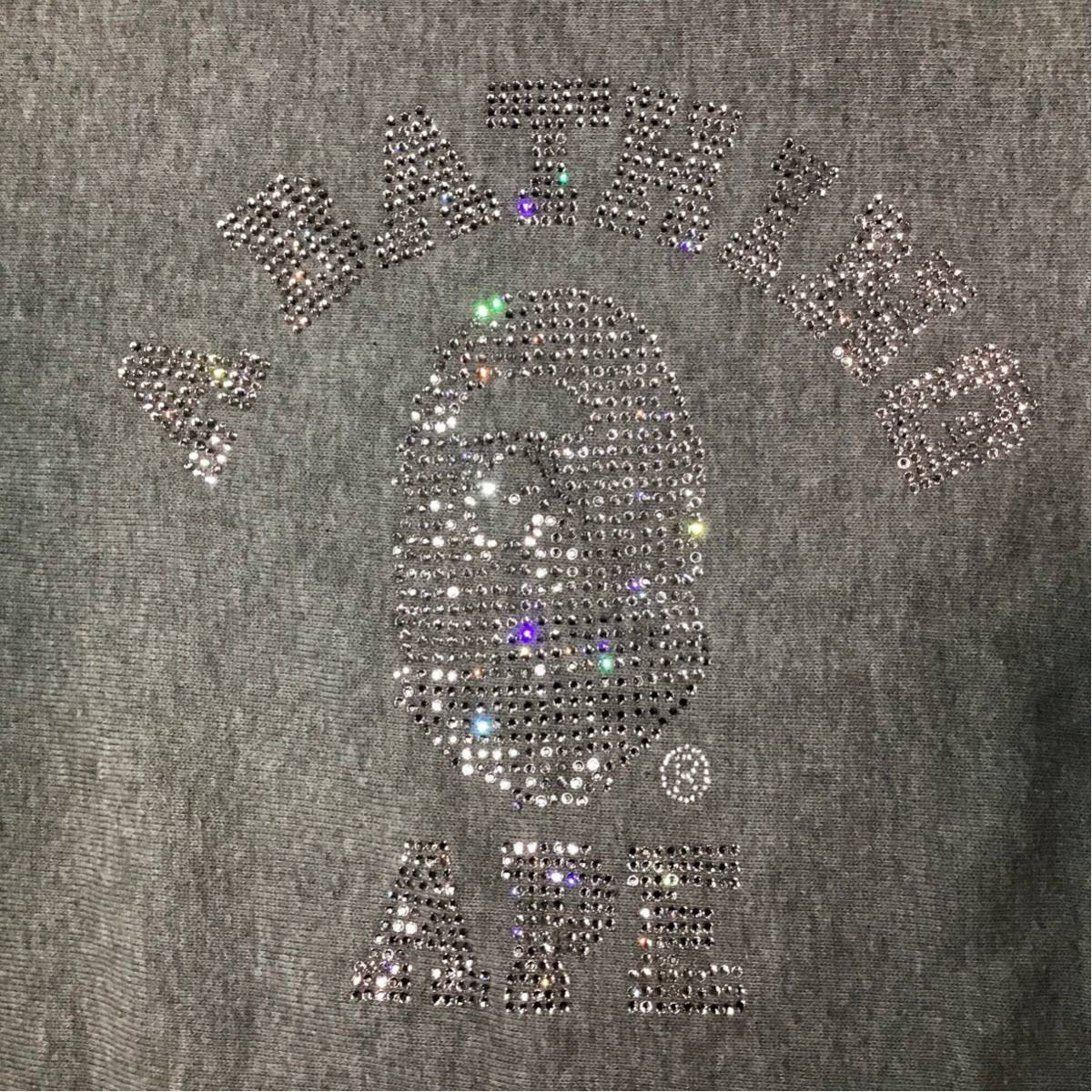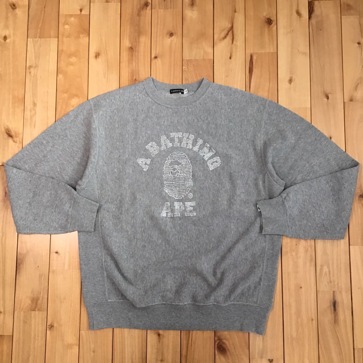 a bathing ape スワロフスキー カレッジロゴ 長袖スウェット グレー Lサイズ です★