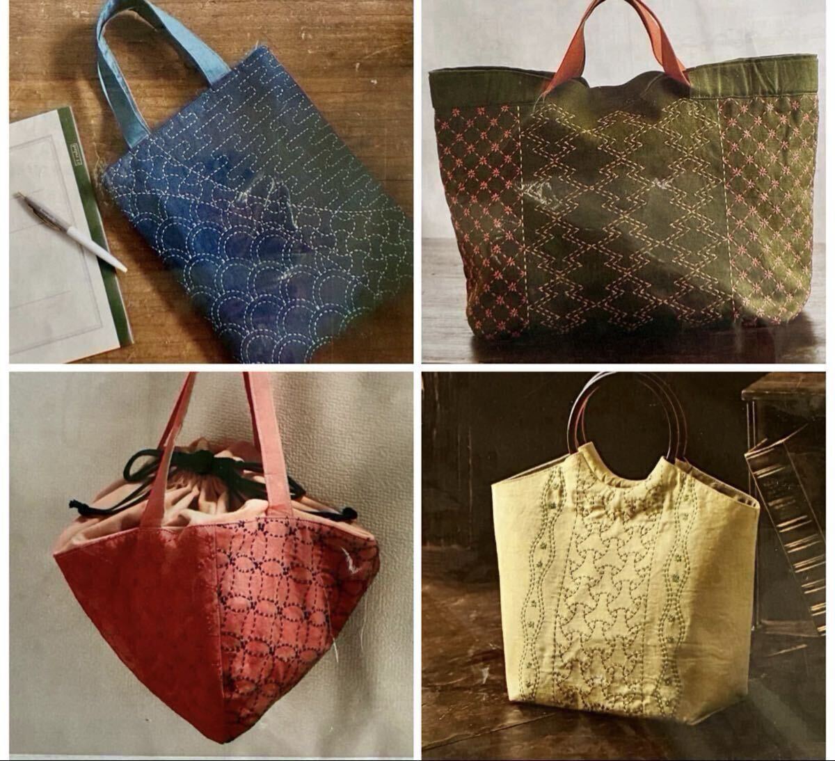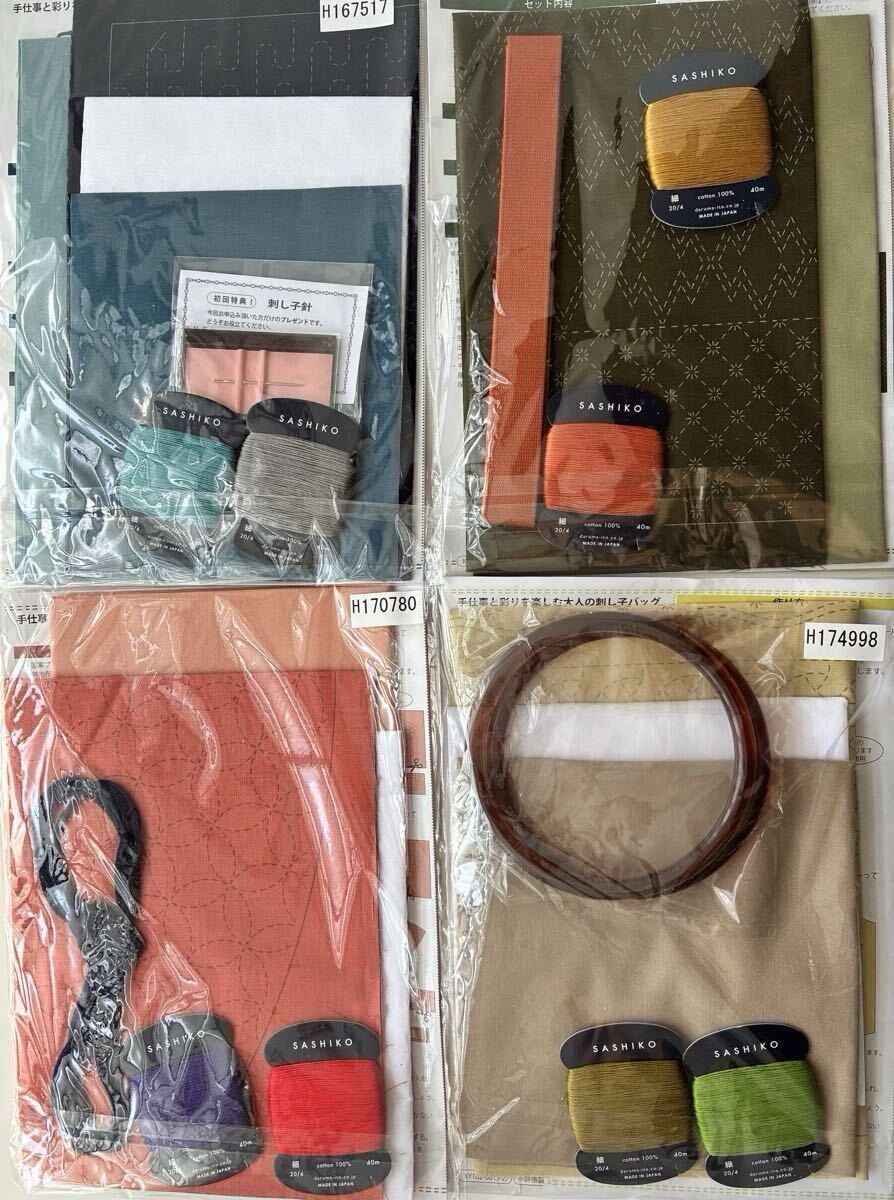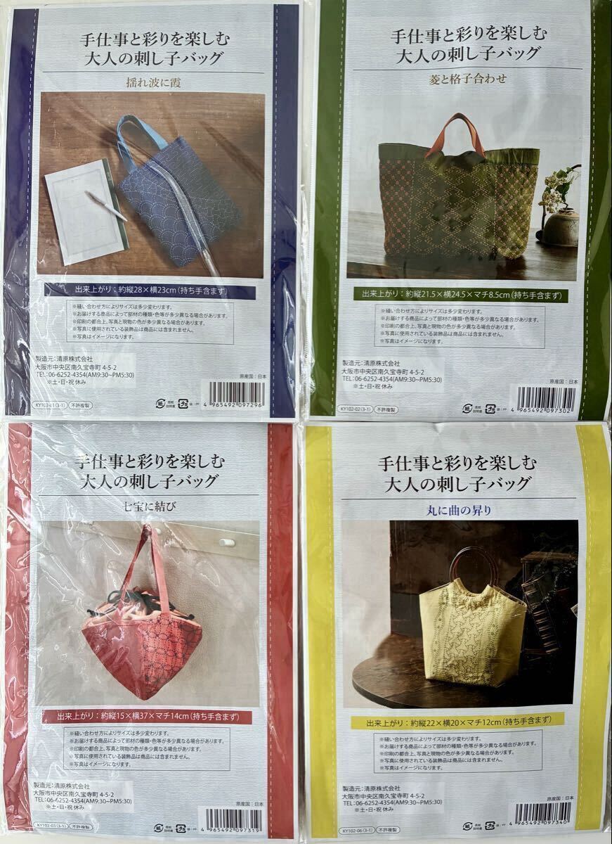 1点限り【4種まとめて】手仕事と彩りを楽しむ大人の刺し子バッグ 手芸キット 刺繍キット ハンドメイド バッグキット 手仕事 新品 清原