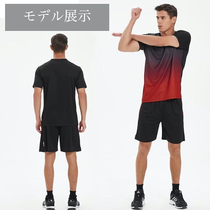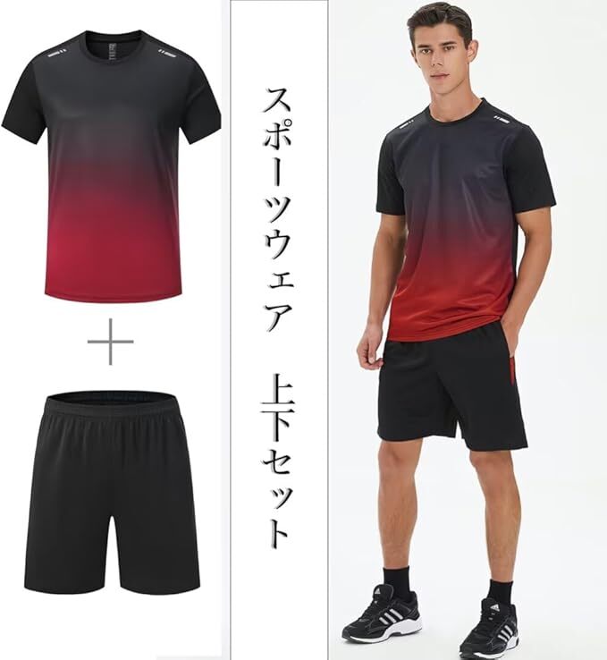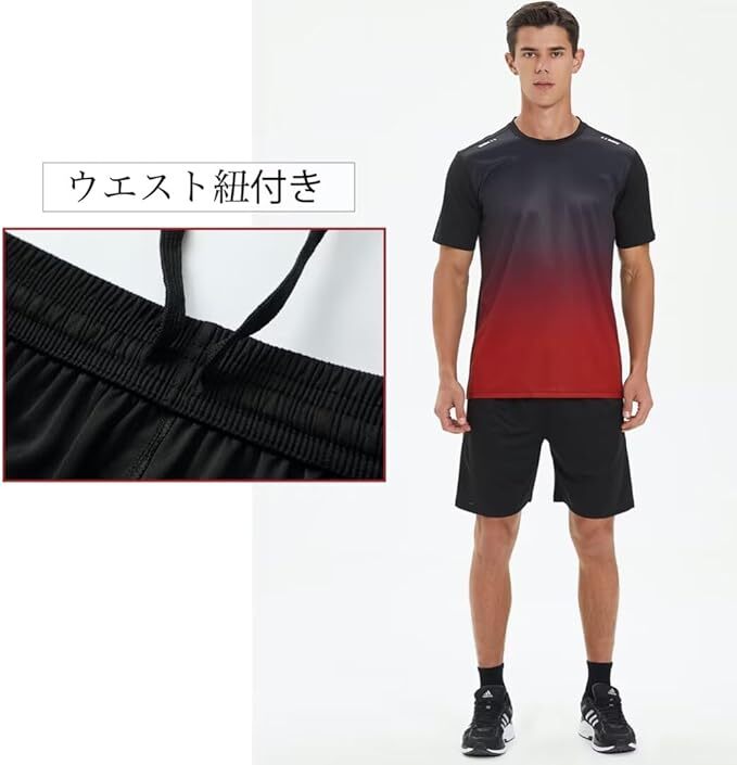 ブラックレッド色 XLサイズ moxixom スポーツウェア メンズ ジャージ 上下セット 運動服 半袖 tシャツ + スポーツ ハーフパンツ