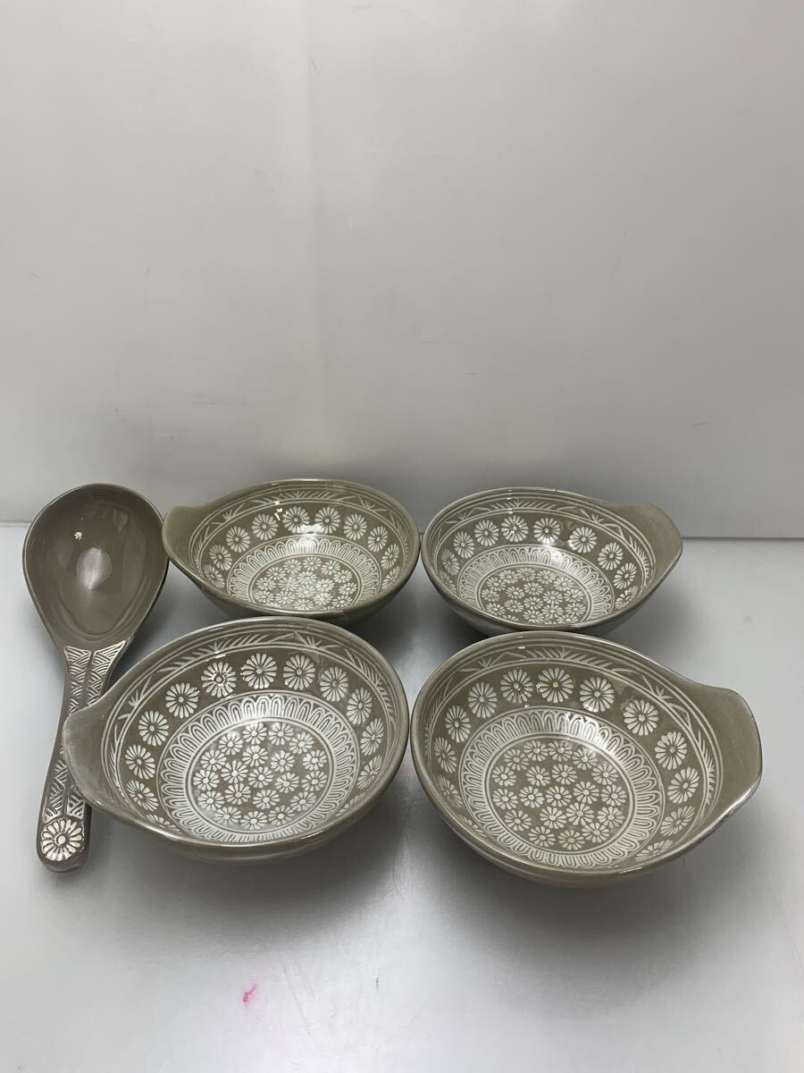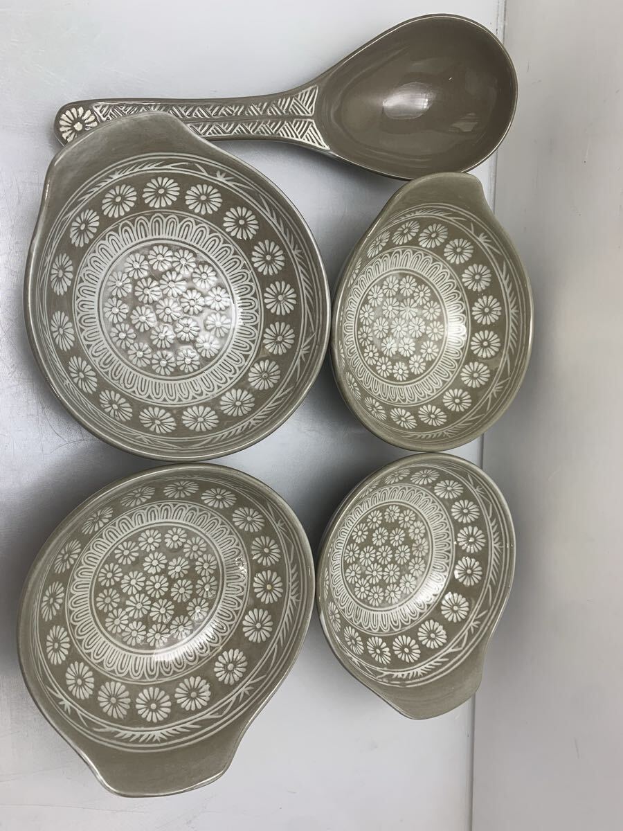 H7-4-50913R 五十 4枚セット グレー 陶器製 レンゲ  1本セット