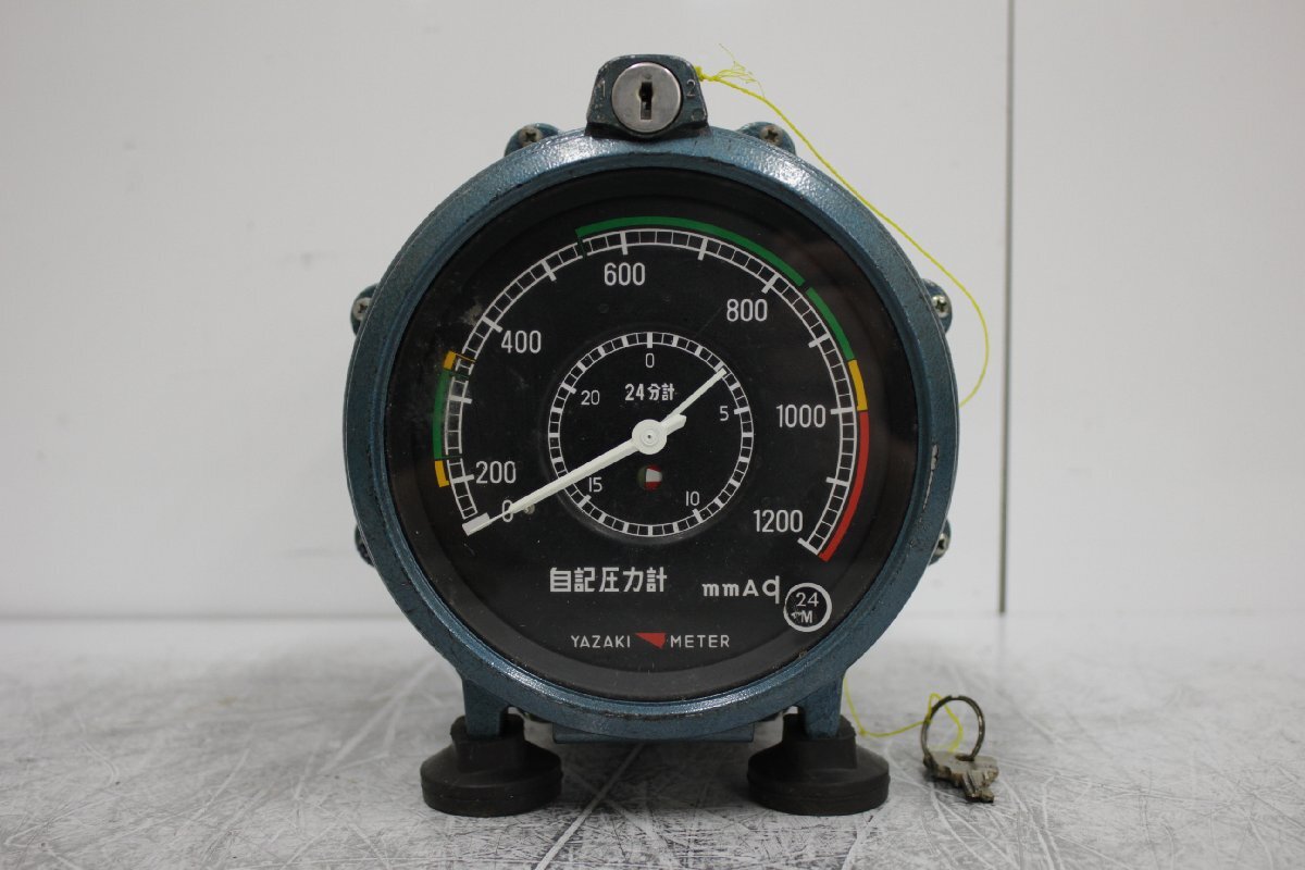 ☆【1R0911-16】 YAZAKI 矢崎計器 自記圧力計 R 1200-24M 鍵付き ガス測定器 24分計 ジャンク