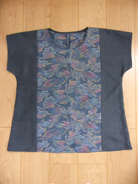 女性服/着物リメイク※ハンドメイド/絹/大島紬/葉柄/カラフル/ベスト/ホームウエア―/ブラウス/トップス/カットソー/チュニック/M~L