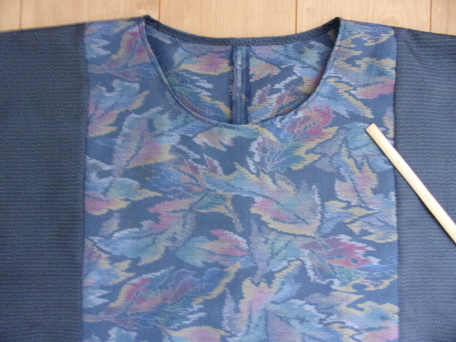 葉柄の大島紬と細かい柄を合わせて作りました。