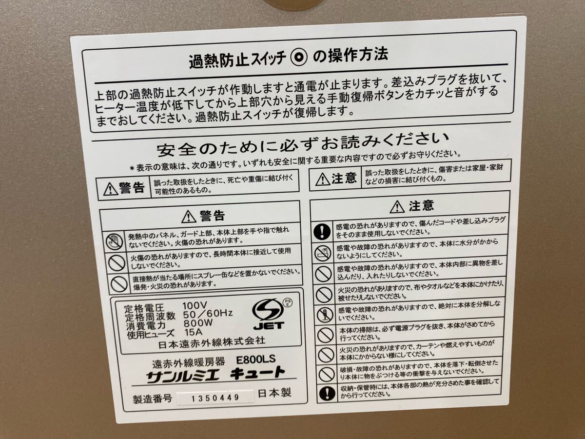 ★ 動作確認にて簡単な短時間の確認ですが、電源ランプがつく事、パネルが熱をもつ事のみ確認致しました。(短時間の確認にてそれ以上の確認などはしておりません)