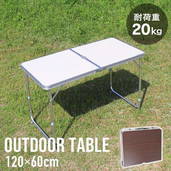 新品 折りたたみアウトドアテーブル アルミテーブル 120×60cm 4~6人用 パラソル穴 高さ3段階 軽量 レジャー キャンプ BBQ mermont 茶