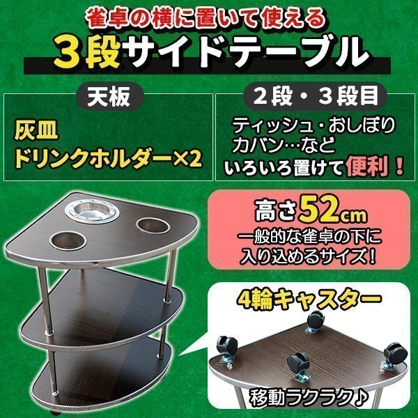 麻雀 サイドテーブル 2個セット 全自動麻雀卓 キャスター付き 灰皿 荷物置き 3段 麻雀卓 雀卓 ドリンクホルダー 卓 机 テーブル 吸い殻