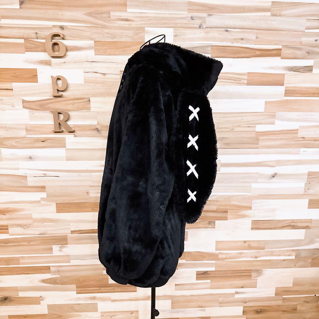* うさ耳BIGファーパーカー *ふんわり柔らかなフェイクファー素材が高級感を漂わせ、触れるたびに心地よさを感じられる仕上がり。大きめのシルエットに動きに合わせてゆらゆら揺れる「ウサ耳」のアクセントと「ロゴ入りテープ」が個性をプラス。さらにジップリングがほんのりとした輝きを放ちモノトーンデザインにさりげないアクセントを添えてくれるREFLEMのパーカーです。既に完売。生産も終了しており今では入手困難となっているお品です。※LGスタイラーにて除菌リフレッシュ・スチームクリーニング済みです。