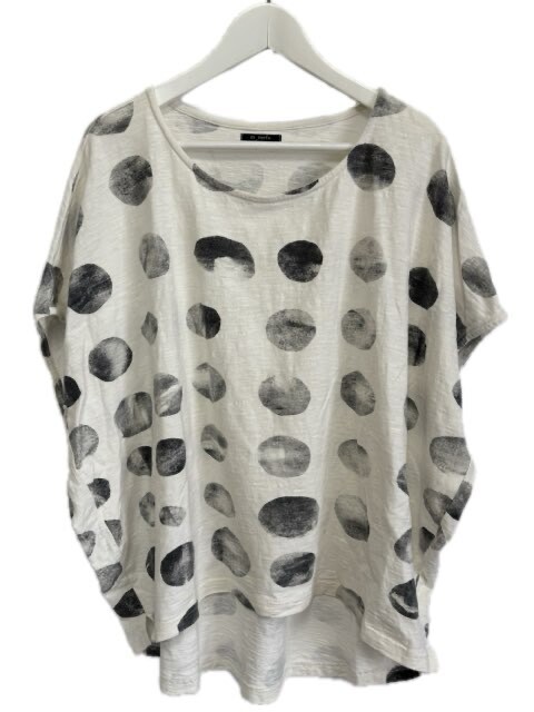 センソユニコ m_mefu 芽風 めふう カットソー チュニック 40 ドット プリント プルオーバー コットン ホワイト グレー 白 トップス