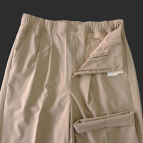 |    新品 未使用 紙タグあり   Lサイズ ※写真は別サイズを使用している場合がございます※ ※商品に記載されたサイズ・寸法です※ ウエスト81~96cm(内回り1周) 股上34.5cm 股下73cm 裾幅23.5cm 腿幅34cm(股下10cm部分) ポリエステル72% レーヨン25% ポリウレタン3% ベージュ  |