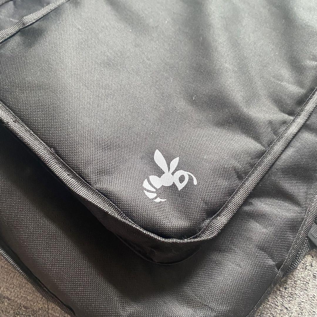 エレキギター用のショルダータイプソフトケース、Ryogaブランドの蜂のロゴ付き。