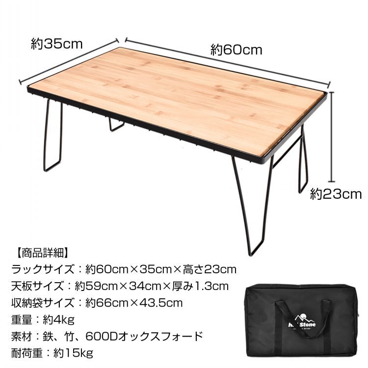 【サイズ】:ラック(約)60cm×35cm×高さ23cm/天板(約)59cm×34cm×厚み1.3cm/収納袋(約)66cm×43.5cm
