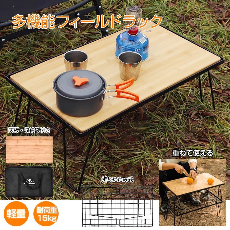 1円 フィールドラック 天板付 収納袋付 アウトドアテーブル 折りたたみ ローテーブル 軽量 耐荷重30kg メッシュ アウトドア キャンプ od595