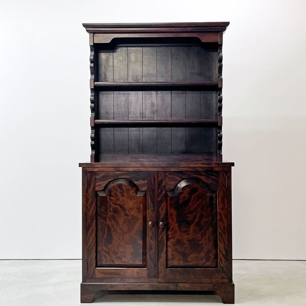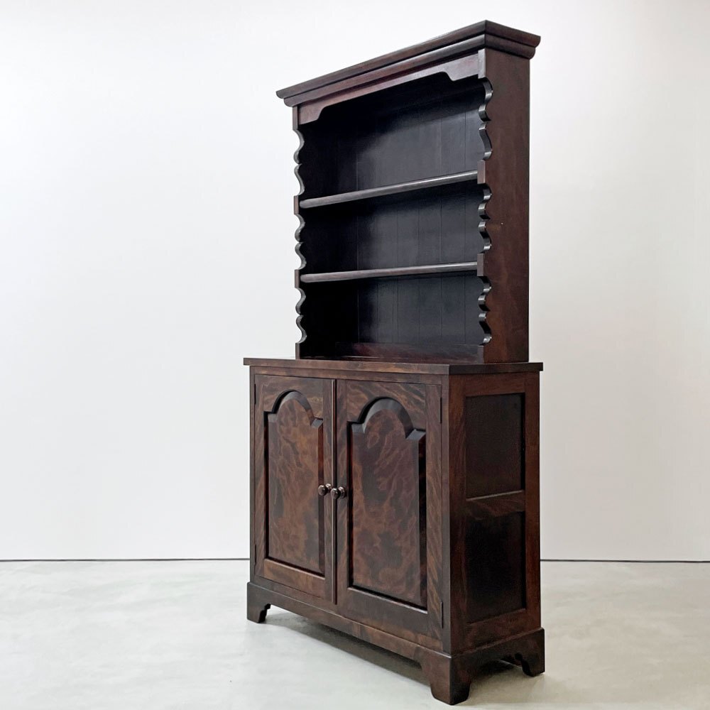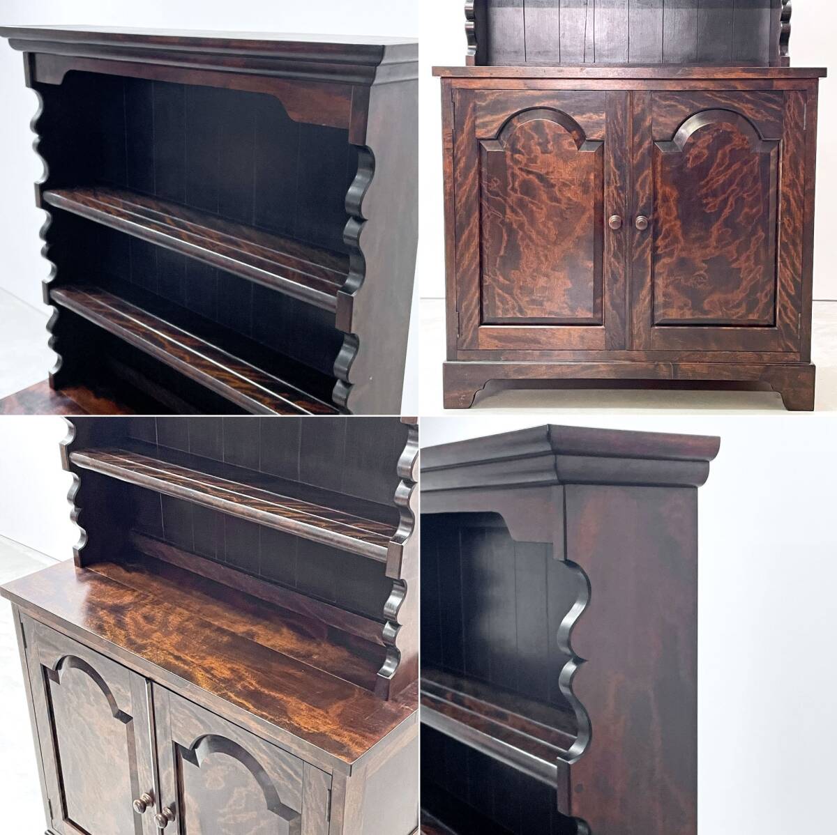 コメント | 独特の杢目が印象的な高級木材” ミズメザクラ “を使用し、長年使い込む事で飴色の艶が生まれる最高級民芸家具、昭和19年創業の老舗家具メーカー松本民芸家具より『 36型 皿棚 』です。 本質に根差し、重厚且つ有益、そして永く愛用に耐える堅牢性がある事。これらを基本理念として全ての家具に込めています。庶民の生活にある実用性を尊び「用の美」を愛する「日本民芸運動」を実践しています。数多ある国内の民芸家具メーカーの中でもトップクラスの人気を誇る民芸専門メーカーです。 主要木材に使用されているミズメザクラは堅く、粘り強く、狂いにくい古来より” 百木の長 “と詠われています。長年の使用に耐え、使い込む程に美しくその存在感を増していくミズメザクラの個性を最大限に活かす為、木肌が呼吸出来る様に自社開発された特別な塗料を使用。経年による風合いの変化をお楽しみ頂けます。 上段はお気に入りの食器や雑貨、書籍の収納に便利なオープンスペース。下段には生活感の出やすい物を目隠ししながら収納出来る木製扉収納となっております。 和家具や民芸家具と合わせるのは勿論、赤みを帯びた色味によりヨーロピアンビンテージの空間とも相性が良いアイテム。 クラシカルスタイルやヨーロピアンスタイルなどの中でも溶け込みつつ、和の雰囲気も演出してくれる一台です。 ※当ショップは、主にリサイクル品を取り扱っております。基本的にUSED品である事をご理解頂き、ご入札をご検討下さいませ。 |