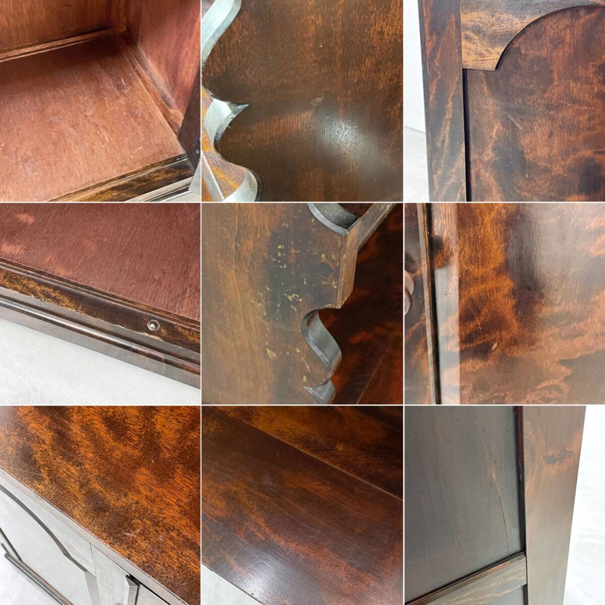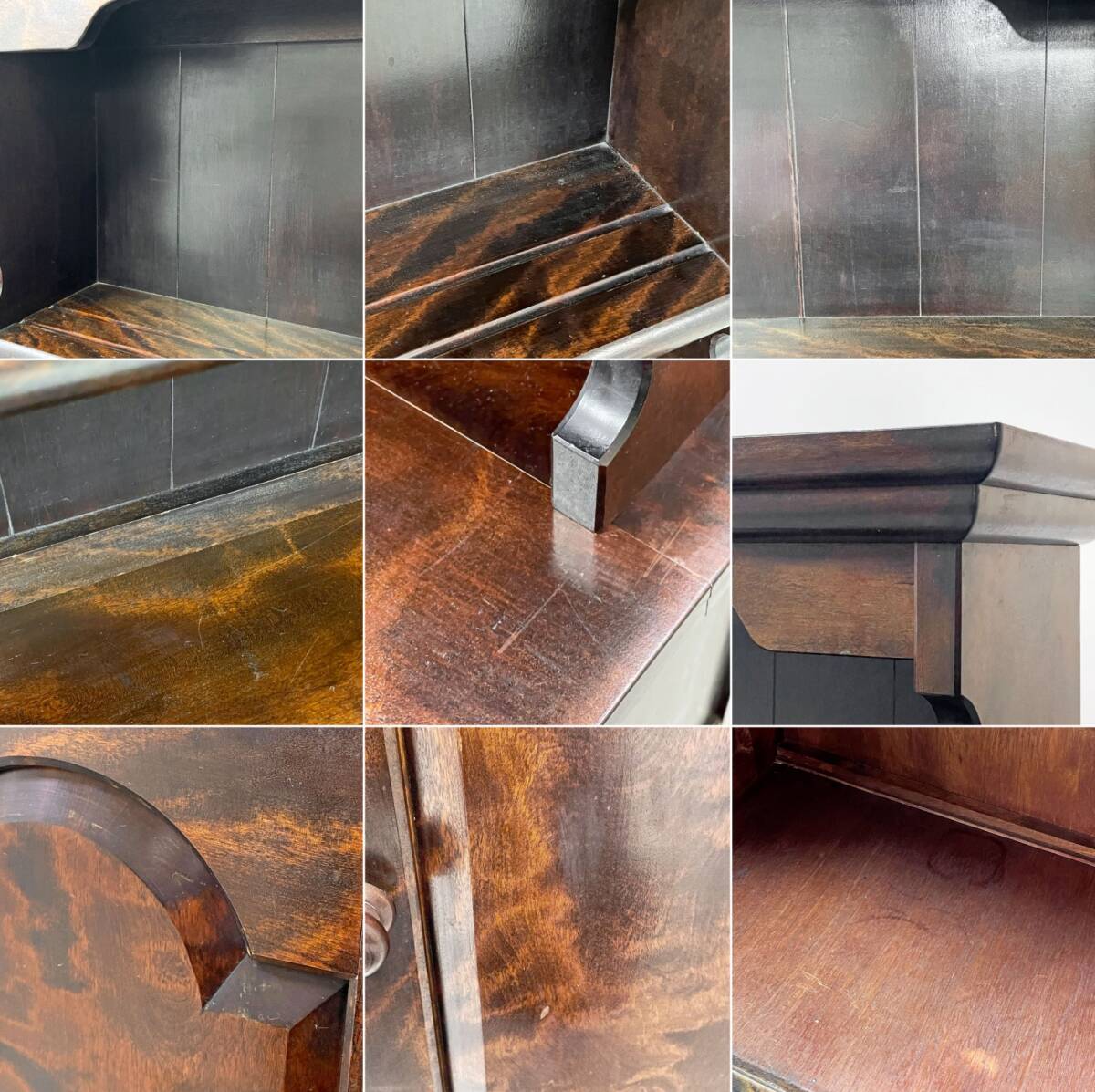 コンディション | 使用に伴う傷や擦れ、微細なくすみ、ペイントロス、下部収納部の下段には輪染みが見受けられます。 また、天板および側面にクラックが見られ、天板には極僅かな段差があるものの、ご使用には大きな支障のない範囲と思われます。 向かって右側の扉の開閉にやや固さが見受けられるため、閉める際には少し力を加えていただく必要がございます。 また、設置場所の床に傾斜がある場合、扉が自然に開いてしまうことがございますので、できるだけ水平な場所への設置をおすすめいたします。 その他、歪みやぐらつき等の使用に問題となるダメージの見られない概ね良好なコンディションを保っております。 ※特筆すべきコンディションは出来るだけ記載させて頂きますが、細かい擦れや傷、汚れ等を完全にお伝えする事は出来ません。画像をご確認の上、ご入札をご検討下さいませ。 ※取扱説明書や保証書等は記載が無い限り付属いたしません。 |