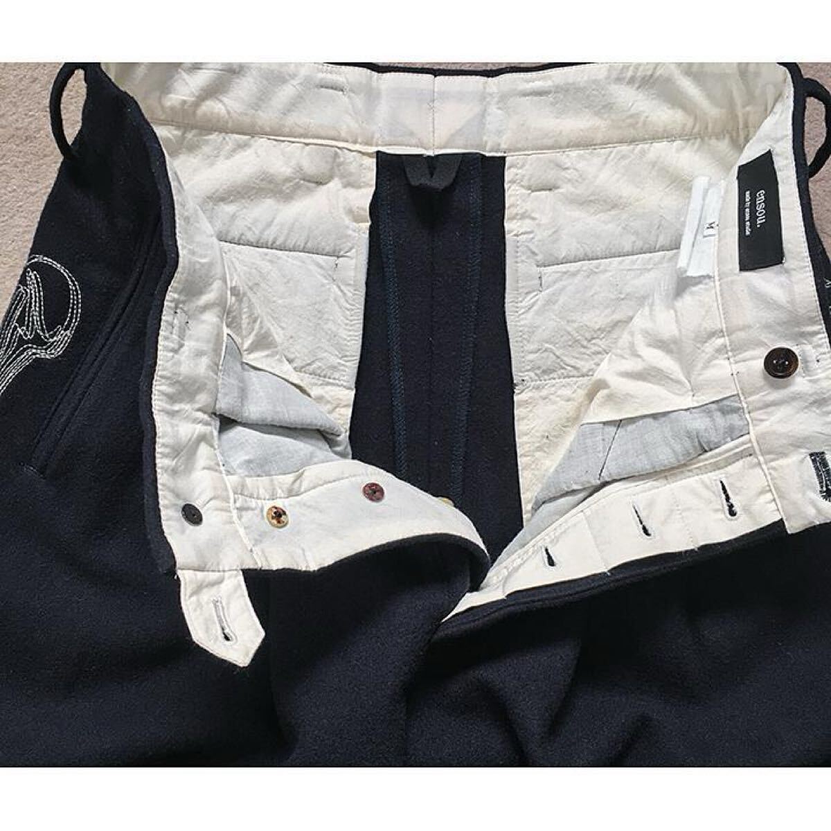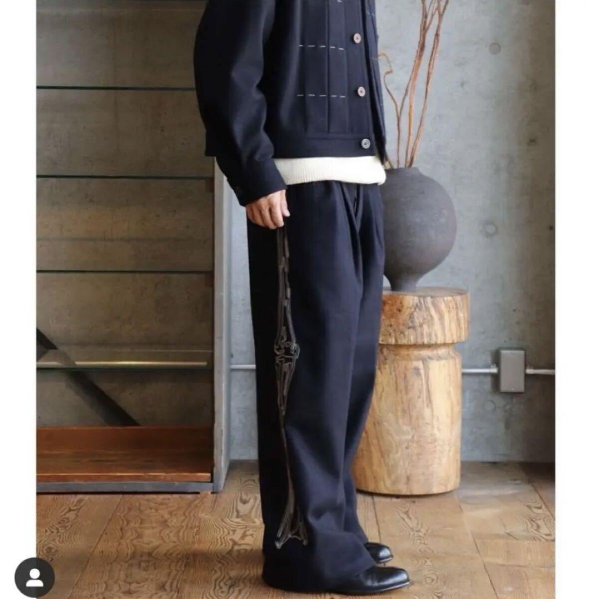 ・メルトン生地。ensouの定番のワイドシルエットのトラウザーズ。