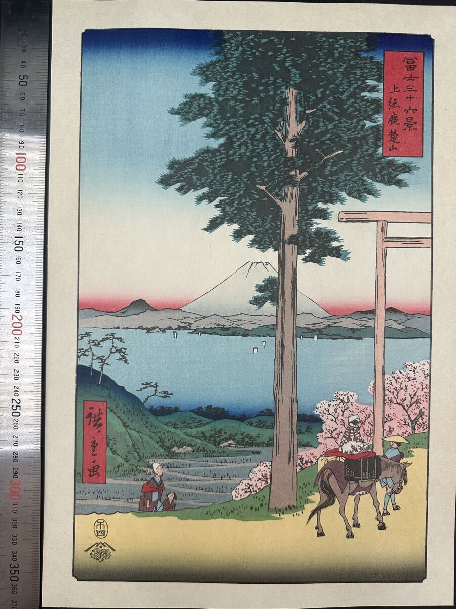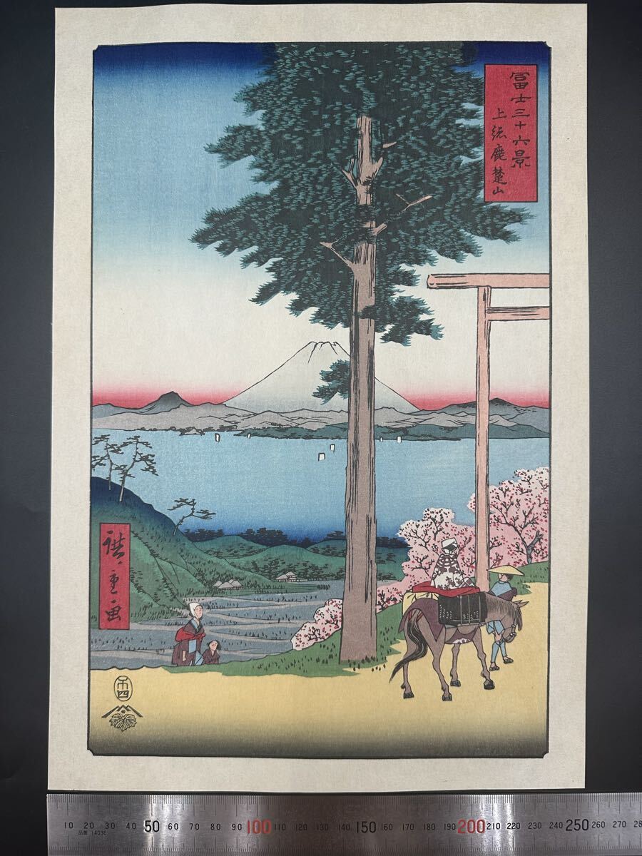 【真作】大正期 浮世絵木版画 歌川広重「冨士三十六景 上総鹿埜山」名所絵 大判 錦絵 保存良い