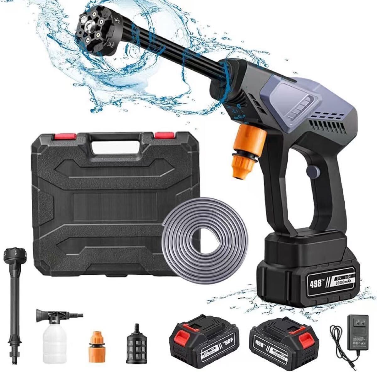 強力なコードレス高圧洗浄機:最大圧力1080PSIのこのコードレス高圧洗浄機を使用すると、短時間で迅速かつ効率的に洗浄できます。バッテリー駆動の高圧洗浄機は20,000mAhの大容量バッテリーを2セット搭載しており、合計容量は40,000mAhです。完全に充電すると100分以上動作できます。同時に、充電式設計により電源に接続する必要がなく、より便利に使用できます。