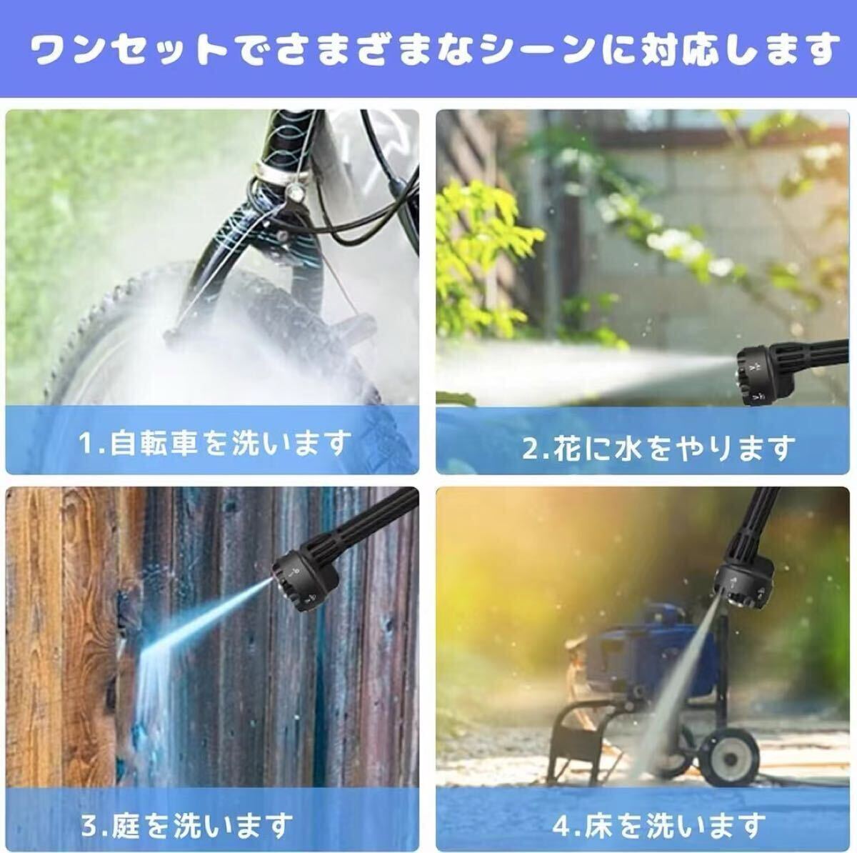 多機能ノズル: この高圧洗浄機には多機能ノズルが装備されており、ノズルを回転させることにより、0°/15°/25°/40°/スプレー/45°傾斜モードなど、さまざまな水モードを簡単に切り替えることができ、さまざまなニーズに対応します。さらに、コードレスパワーウォッシャーにはフォームポットが付属しており、洗剤を追加すると、濃い泡が生成されます。この汎用性により、さまざまな清掃作業に正確に取り組むことができます。