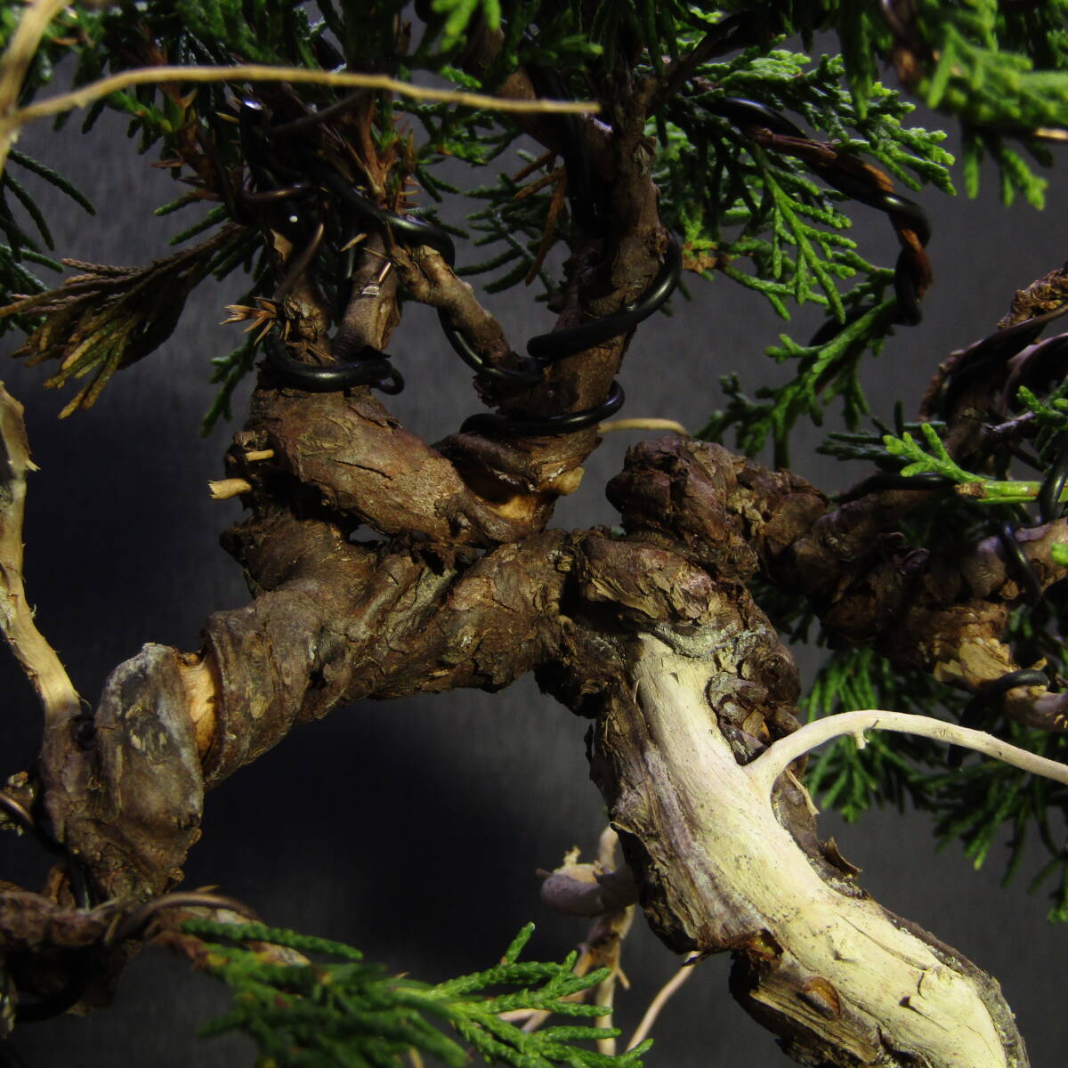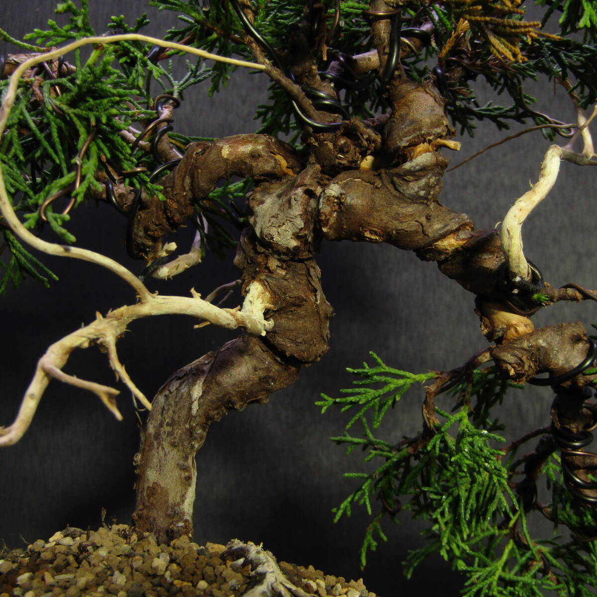 〇舎利と水吸いによる幹芸が印象的な糸魚川真柏の盆栽・盆栽素材です。