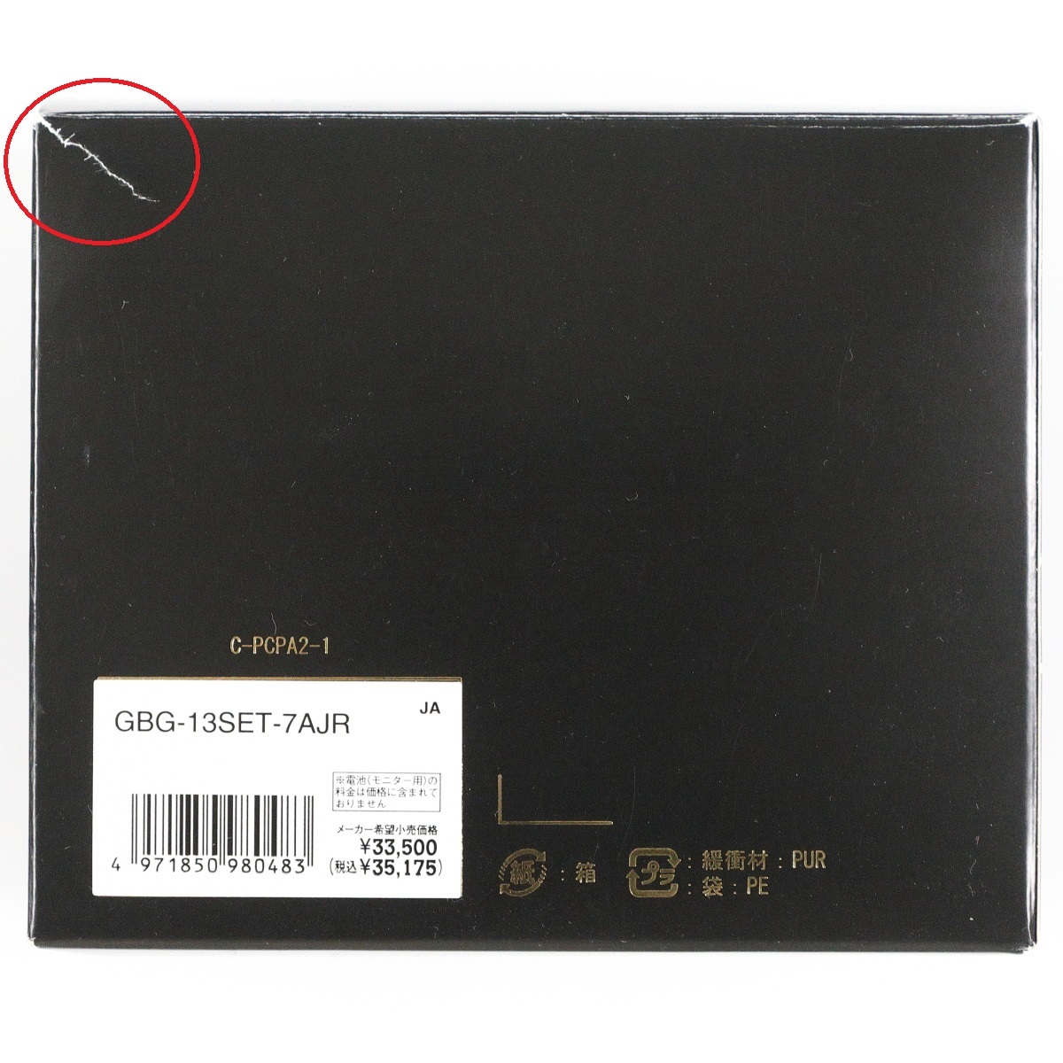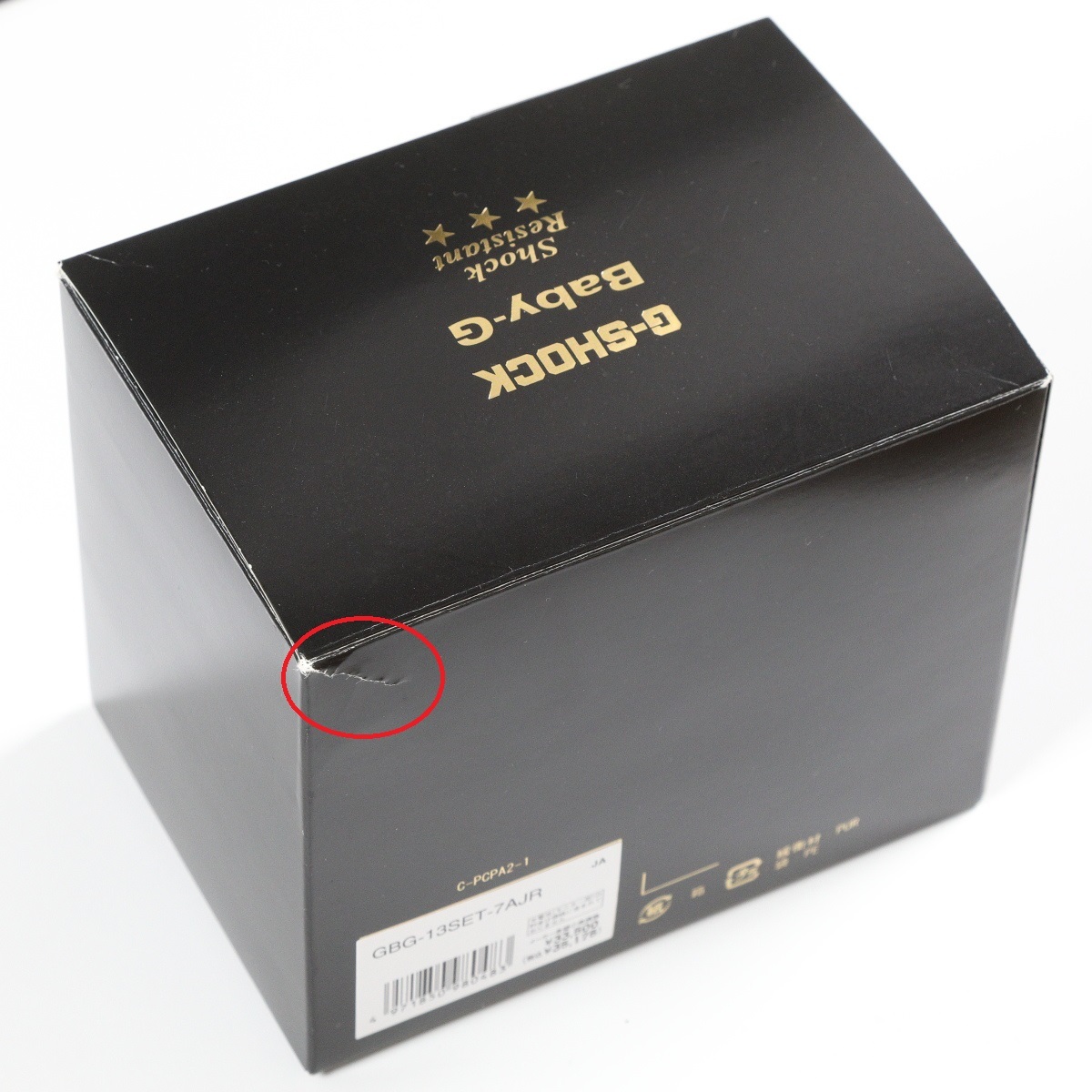 開けるときに力を入れてしまい紙の外箱の一部が少し裂けてしまいました。画像の赤印参照して下さい。