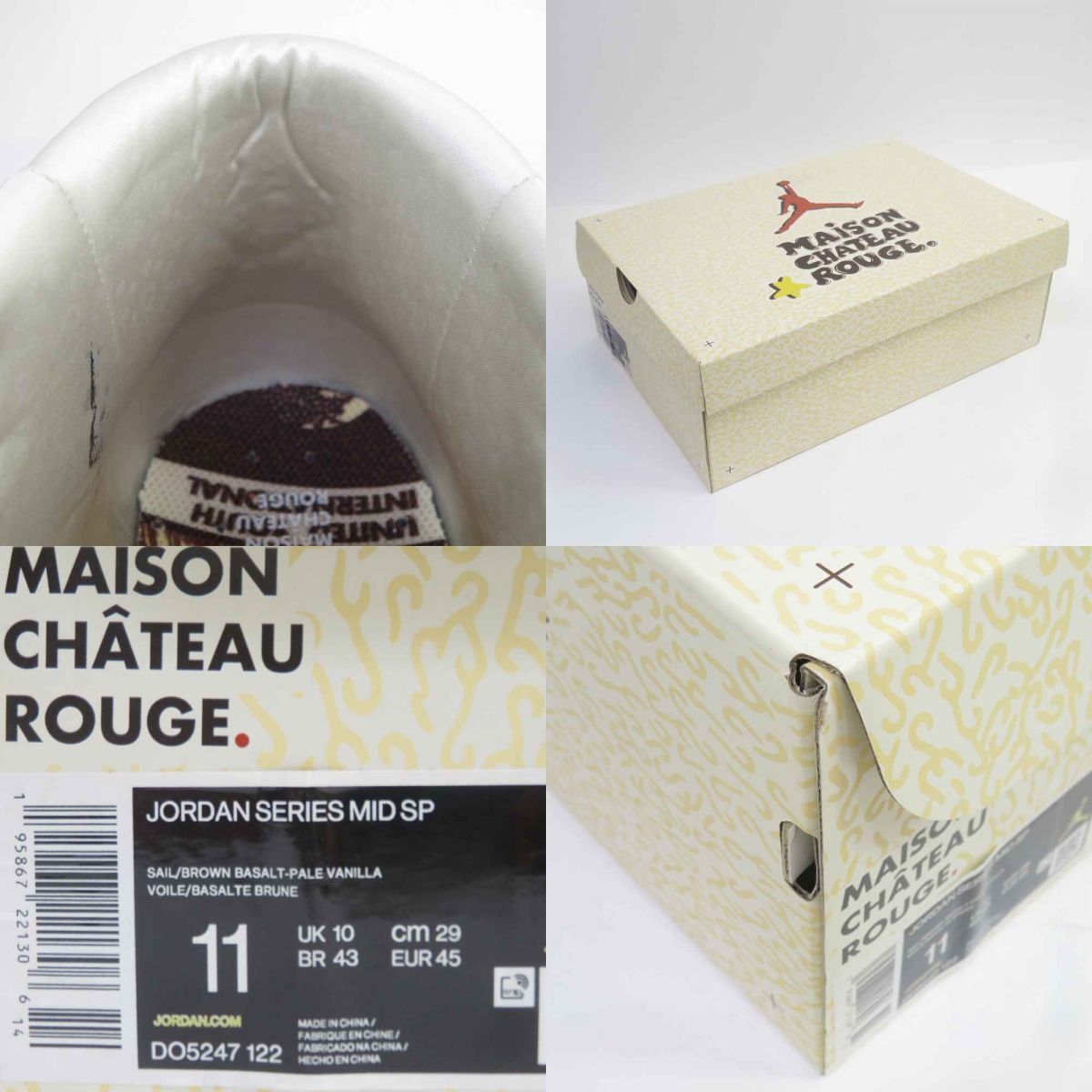 153s MAISON CHATEAU ROUGE ×NIKE メゾン シャトー ルージュ ナイキ JORDAN SERIES MID SP DO5247-122 US11 29cm 箱有 ※中古 □付属品:外箱、紐 ※画像にあるもので全てです。 □型番:DO5247-122 □サイズ:29cm □状態 ・使用に伴う履きジワ、ソール減り、スレ、汚れ、ホコリ付着が見受けられます。 ・左足の履き口にテープのようなものの付着跡があります。 ・外箱には保管によるスレ、キズ、汚れなどの傷みが見受けられます。 ※モニターの環境により実物と画像の色が違うように見える場合があります。 ※クリーニングが必要な場合は購入者様でご対応ください。 ※画像では判別しづらいUSED品特有の薄い汚れや薄いキズ、細かいキズなどある場合があります。 ※商品の状態は当方の主観によるものですので、美品・新同品をお求めの方はご購入をお控えください。 |