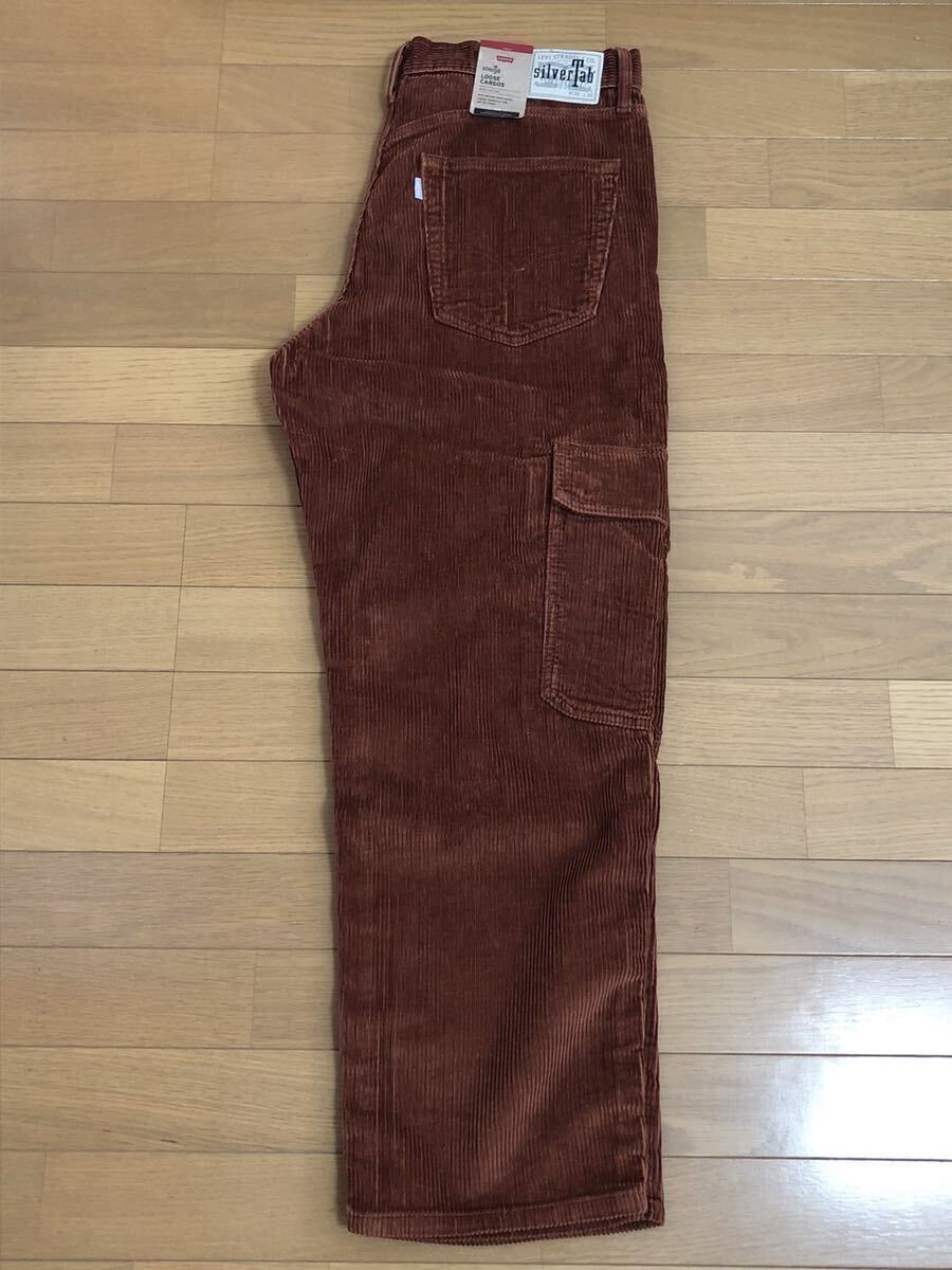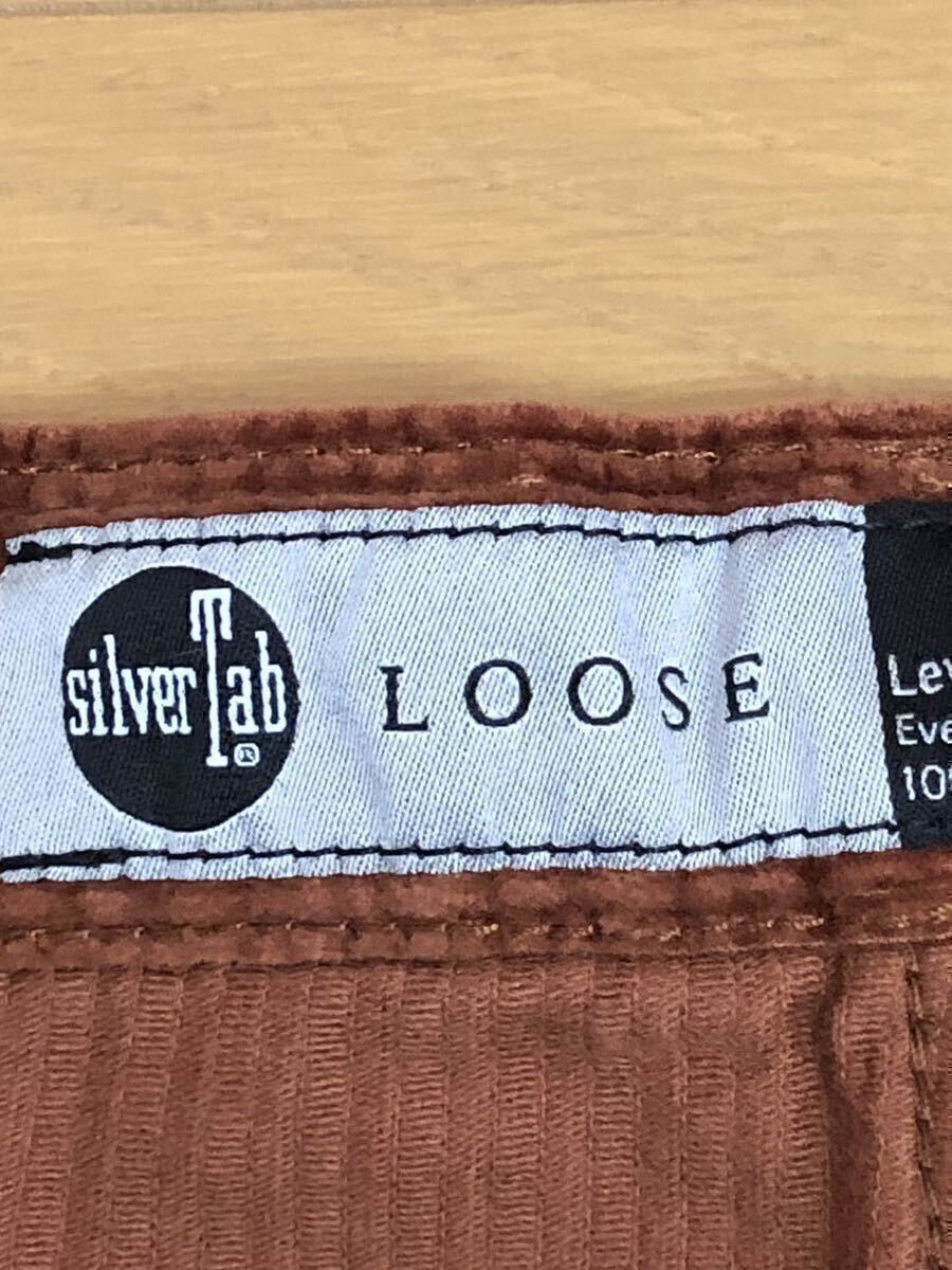 Levi’sのコンテンポラリーラインとして、1985年にスタートしました。リーバイスのシンボルであるバックポケットのタブがシルバーで、その独特の雰囲気のワイドで緩さがあるリラックスシルエットは、現在でもストリートやミュージック等のカルチャーと融合し、若者を中心に爆発的な人気を博しているラインです。女性のファンも多くジェンダーフリーで楽しめるsilver Tabコレクションは、昨今の日本の古着市場でも最も多くリサーチされている人気ラインの一つです。Silver Tabを代表するFitの一つである「LOOSE」。全体的にルーズでゆとりがありながらも、裾に向かって細くなるテーパードになっているので足元が引き立つのが魅力のシルエット。両サイドにポケットを配して近年人気の高まってきているカーゴパンツ要素をプラス。は90年代の雰囲気を感じさせるブランカラーの太畝コーデュロイ生地がポイントです。足元にボリュームを出しながら穿いて頂くのがオススメの一本です。