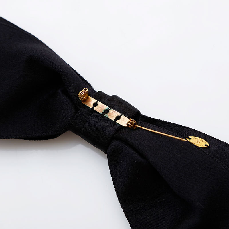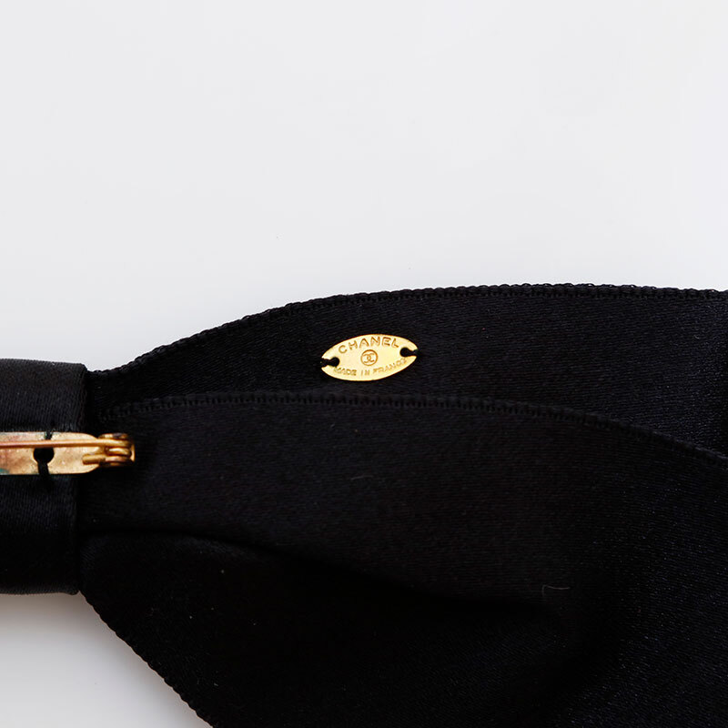 シャネル CHANEL ブローチ サテン リボン ブラック