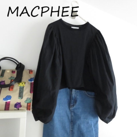 送料込 匿名配送 MACPHEE マカフィー バルーン 長袖 プルオーバー 黒 ドルマン