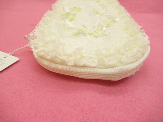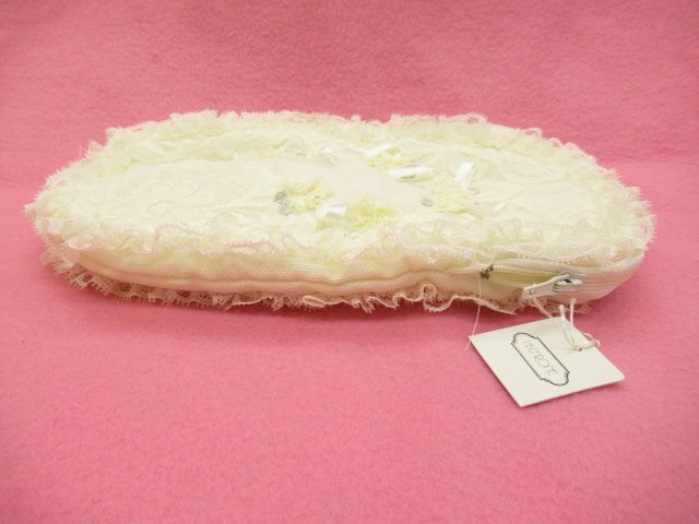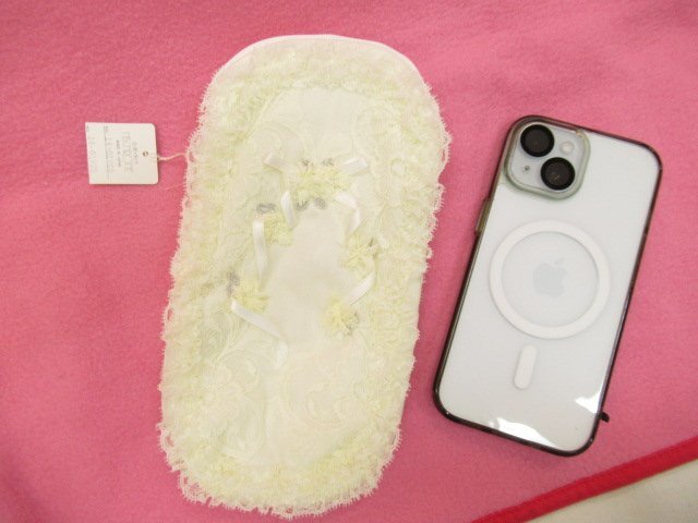 【色】 薄いレモン色がかった白 【サイズ】 約 11×21×1.5ぐらい 【素材】 綿100 中綿:ポリエステル100 裏地:ナイロン100% レース:綿 ナイロン 【付属品】 画像の紙タグ(画像10のスマホは付属しません) 【参考定価】 -円 【商品説明】 ヒスクローネの画像のように表面がレース素材で回りにフリルの飾りがあり、中央にリボン紐の飾りもある縦型の薄いポーチです。 画像10のようにスマホも収納できる大きさで、縦型の薄めの中綿入りのポーチなのでいろいろな使い方が出来ると思います。 -------------------------------------- 【状態ランク】 外観:新品未使用 中側:新品未使用 【状態説明】 ・外観は画像のように紙タグが付いたままの新品未使用品で、特に目立つような汚れはありません。 ・中も特に目立つ汚れはありません。 ・店頭販売もしておりますので、店頭での目立たない程度の小さな汚れ等はご了承下さい。 |