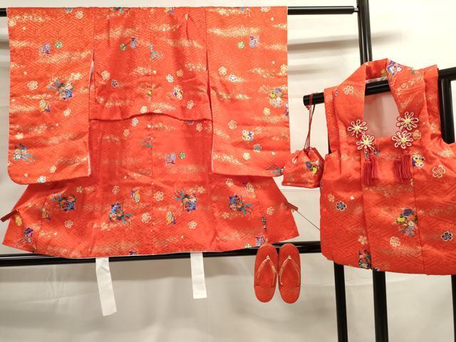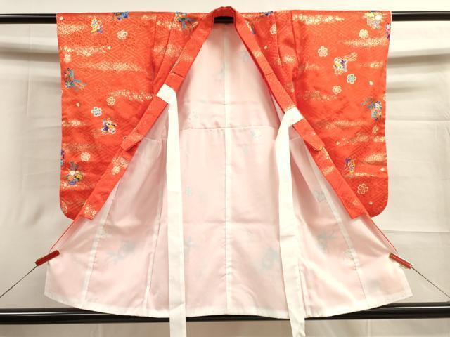 【祝着】 身丈 80cm(肩から) 裄丈 44.5cm(肩上げ 1cm) 袖丈 56cm 縫込み 1.5cm 袖幅 26.5cm 前幅 16cm 後幅 20.5cm 着物縫いこみ 内揚げ 0cm (腰上げ 4.5cm) 裄 お袖側 約1cm 身頃側 約0cm 【被布】 身丈 48cm(肩から) 裄丈 14cm(肩上げ 2.5cm) 【草履】 長さ 18cm 高さ 5cm程 《 サイズについてはこちら 》 |