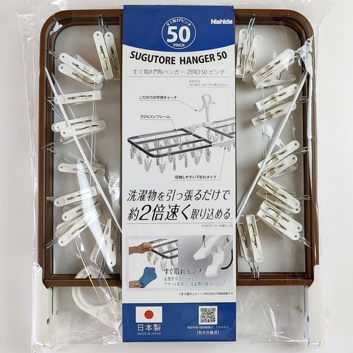 ニシダ Nishida  洗濯ハンガー スチール すぐ取れ角ハンガー ZERO50 BR ホワイト 50ピンチ付 224626 大型 ワイド 金属 サタデープラス サタプラ 91