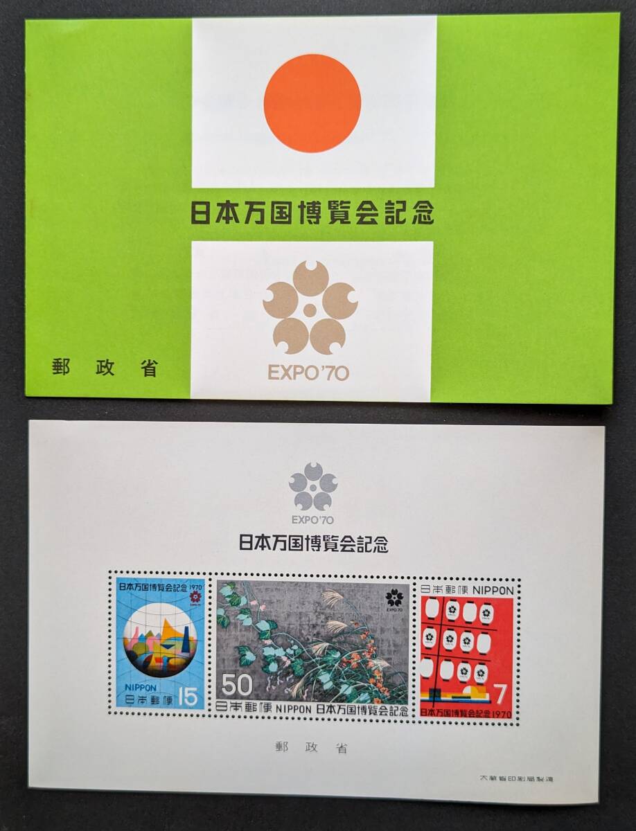 日本万国博覧会記念(2次) 小型シート未使用 50円 1枚 15円 1枚 7円 1枚