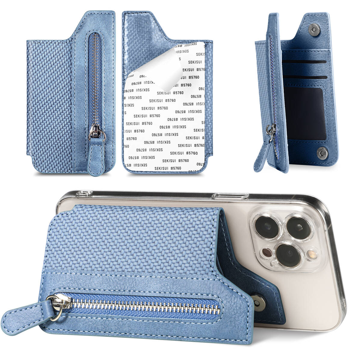 ブルー スマホ 背面カードホルダー 名刺入れ 横置き機能 高級PU iPhone Samsung Galaxy Google Pixel Sony Xperia LG Accessory