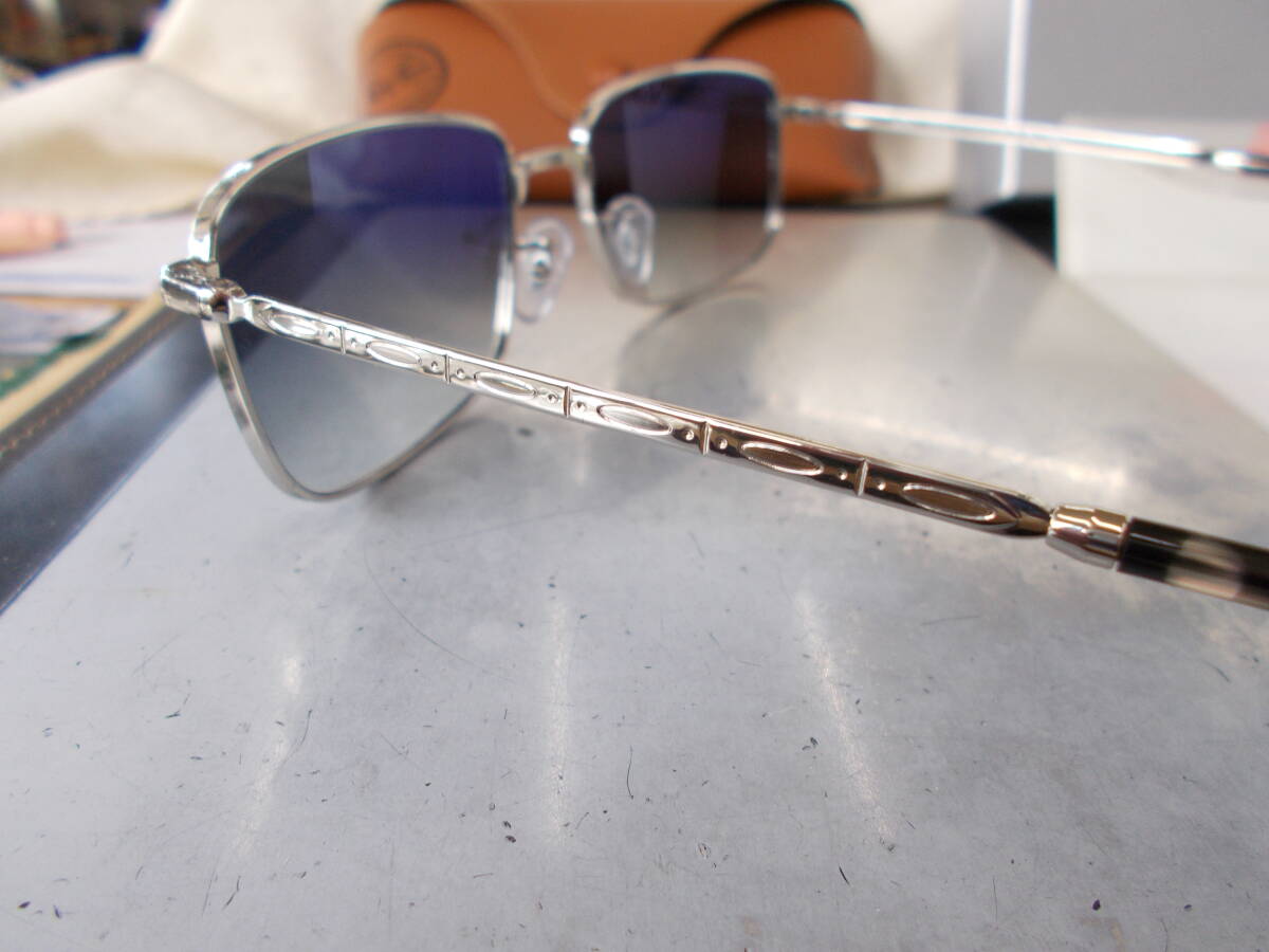 写真の紙製化粧箱、専用ケース、専用セリート(メガネ拭き)がつきます。