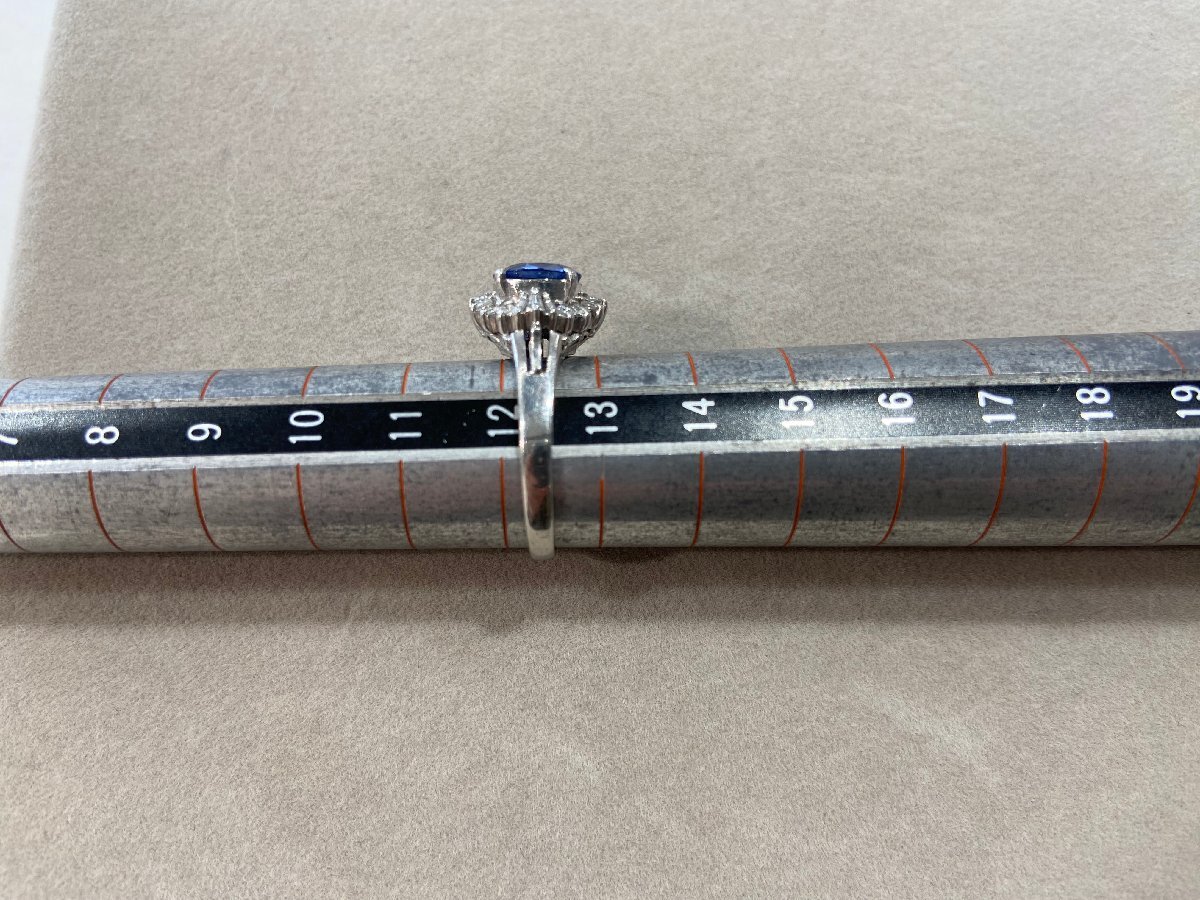 【リング】 Pt900 プラチナ900 ブルーサファイア様石1.446ct メレダイヤ0.34ct 約12.5号 約5.3g 指輪 アクセサリー SY02-136