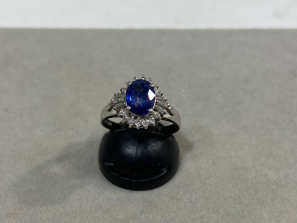 ・材質:プラチナ900 ブルーサファイア様石1.446ct メレダイヤ0.34ct